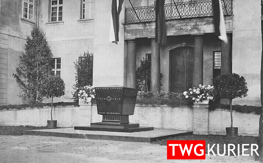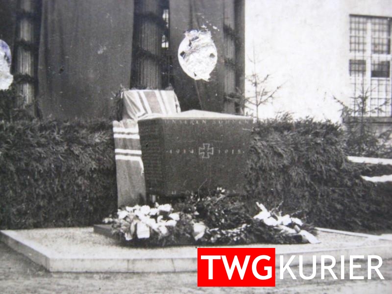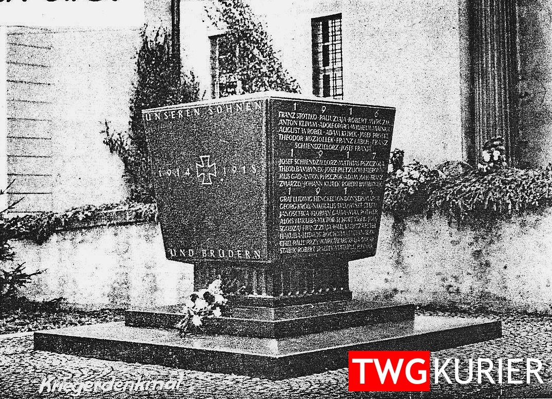 Archiwalne zdjęcie, które publikujemy powyżej zostało wykonane w latach 30. XX w. Przedstawia front obecnego Urzędu Gminy z pomnikiem upamiętniającym ofiary I wojny światowej. Monument stosunkowo szybko zniknął z pejzażu Tworoga i pomimo prób odzyskania, nigdy nie wrócił na swoje miejsce.