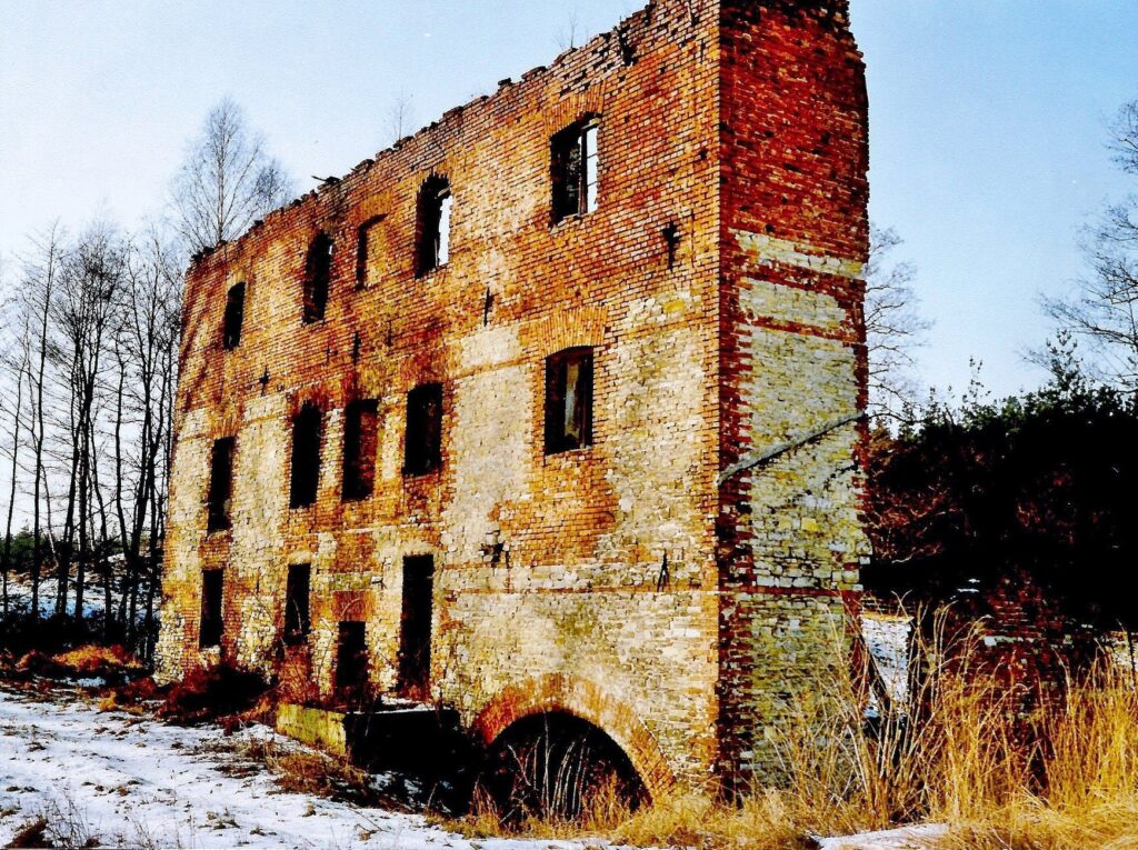 Foto. „Zielona Muehle” – ruiny (lata 90. XX w.). Zdjęcie Fryderyka Zgodzaja z książki „Dwa Rogi”.