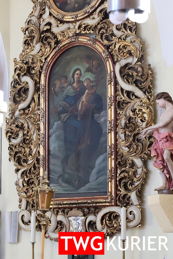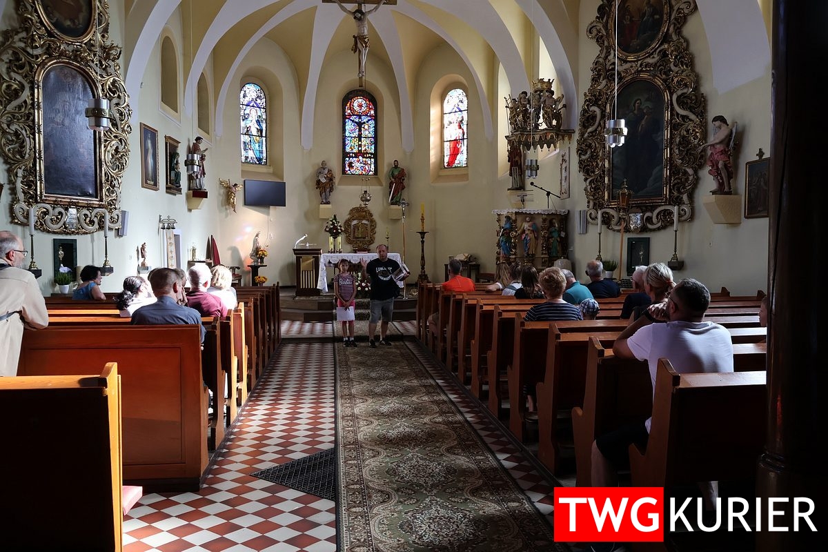 Kilka kroków dalej wkroczyliśmy do kościoła w Kotach. Tu poznaliśmy dzieje parafii w Kotach i Tworogu, losy osób pochowanych na cmentarzu oraz tajemnice krypty pod jednym z ołtarzy. Pan Michał w fascynujący sposób przybliżył postać Konrada Piecucha – w słusznie minionych czasach PRL – uznawany za męczennika, choć jego życiorys nie był tak jednoznaczny.