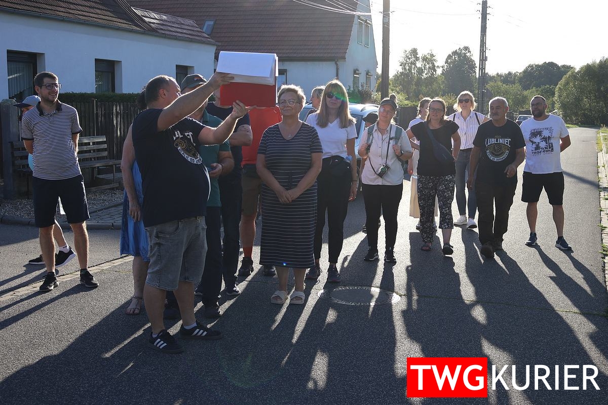 Idąc dalej śladami hutniczej przeszłości Kotów, dotarliśmy do Piosku… Miejscowi wiedzą, o co chodzi – uczestnicy spaceru już też. 😉