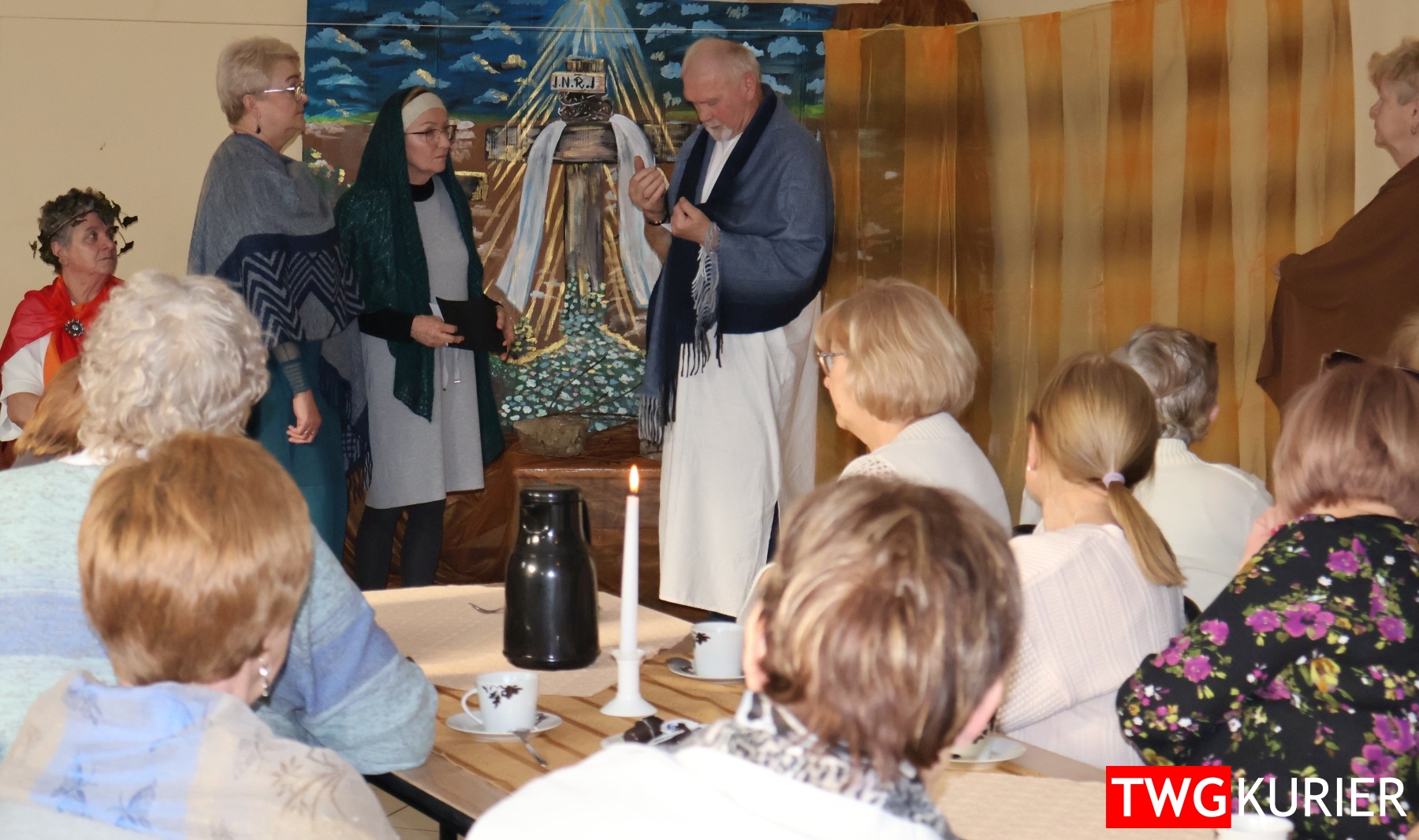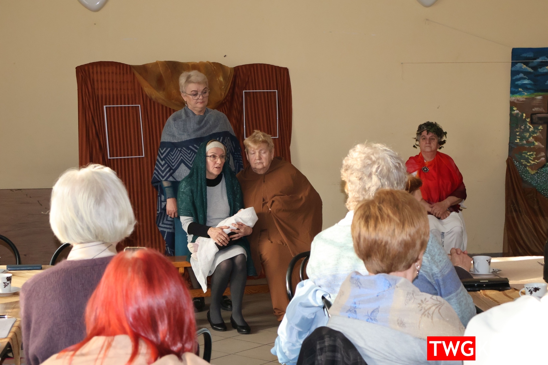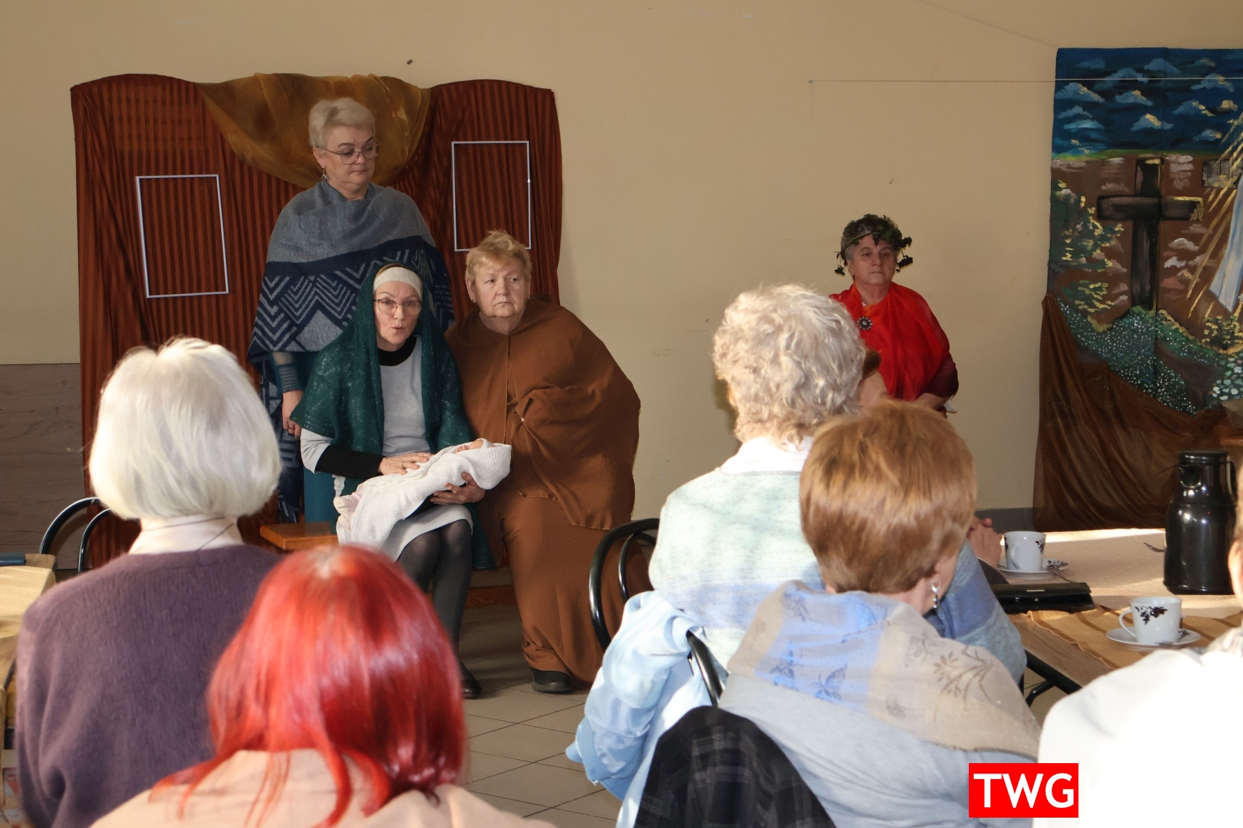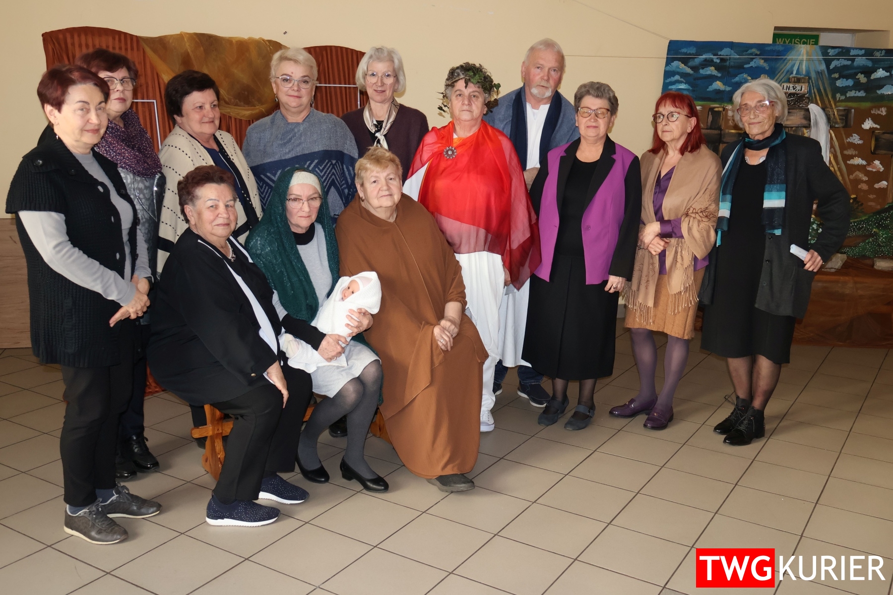 W niewielkiej świetlicy w Nowej Wsi Tworoskiej usłyszeliśmy „Lament Madonny”, który autentycznie wzruszył, a dzięki dekoracji udało się „wyczarować” fragment Jerozolimy. Inscenizację przygotowano na podstawie oryginalnego tekstu, który na potrzeby sceniczne został wzbogacony przez Barbarę Izworską o kilka kwestii. Dekorację (część malowaną) wykonała Sonia Rekus, natomiast o scenograficzną całość zadbała Joanna Bykalska. – Bardzo dziękuję wszystkim aktorom i osobom zaangażowanym w przygotowanie inscenizacji. W sposób szczególny dziękuję Pani Basi za to, że po raz kolejny nas zmotywowała – podsumowała przewodnicząca Klubu, Natalia Frączek.