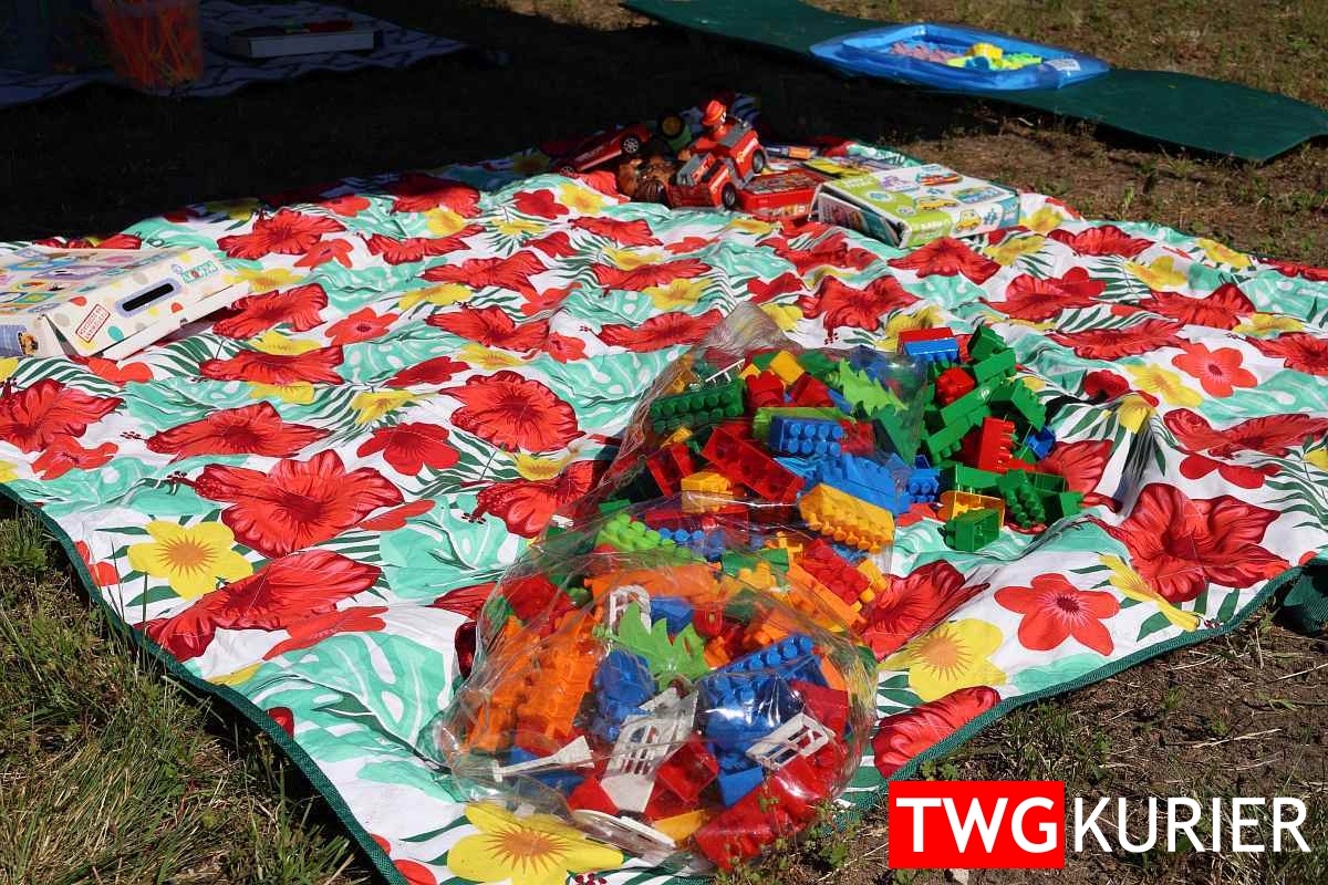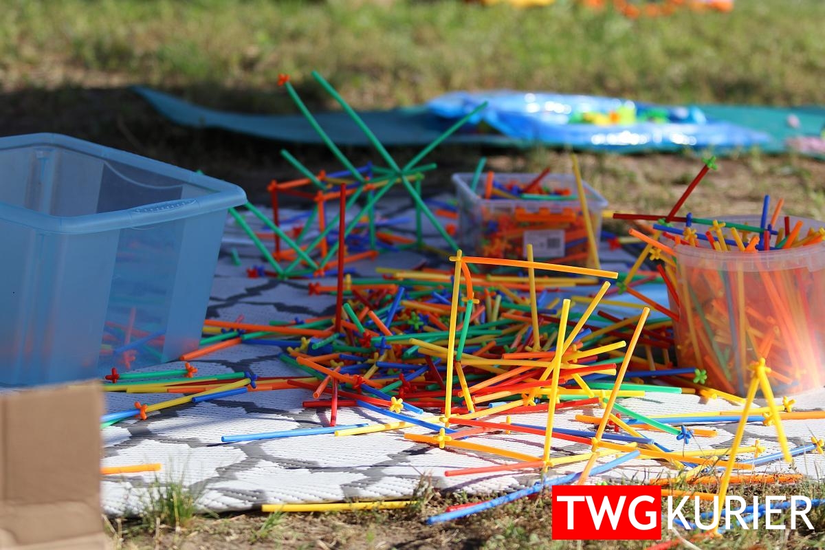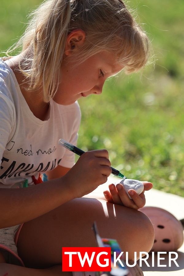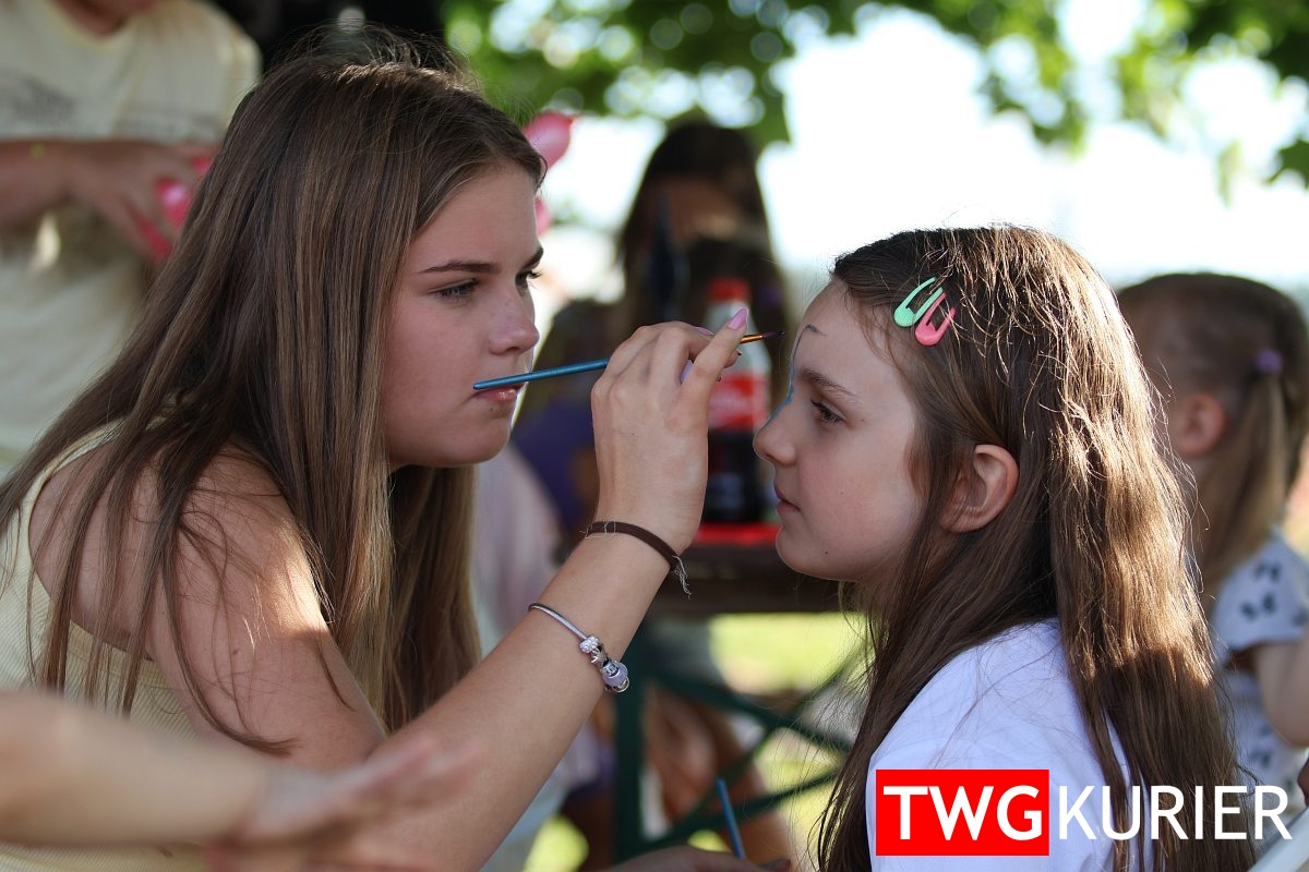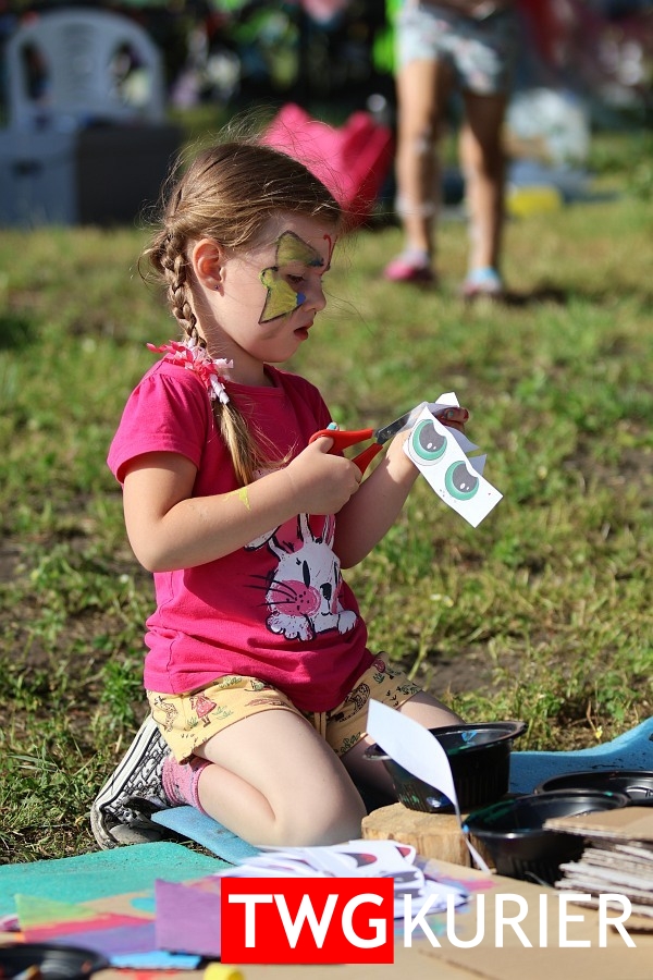 Mali artyści mogli uwolnić swój talent w specjalnej strefie plastycznej. Były farby, brokaty, pędzle i cała masa fantazji. Niektóre prace wyglądały tak, jakby miały trafić na wystawę w Luwrze – a jeśli nie tam, to przynajmniej na honorowe miejsce w lodówce. Obok – punkt fryzjerski, gdzie można było dorobić sobie kolorowe warkoczyki. Tęcza na głowie? Czemu nie!