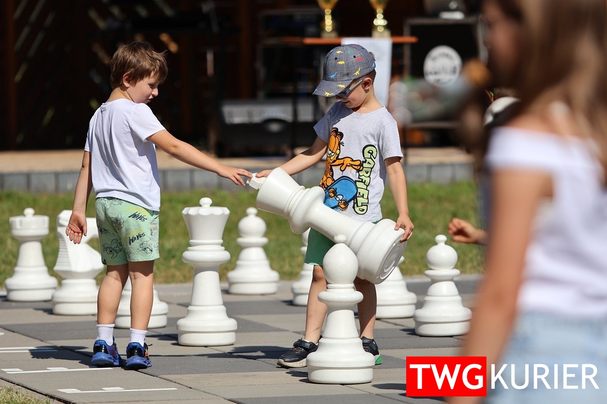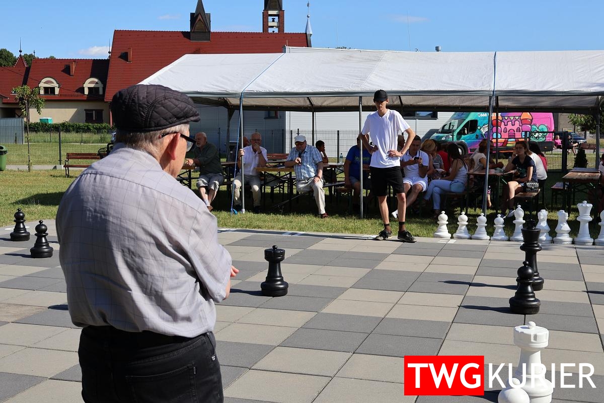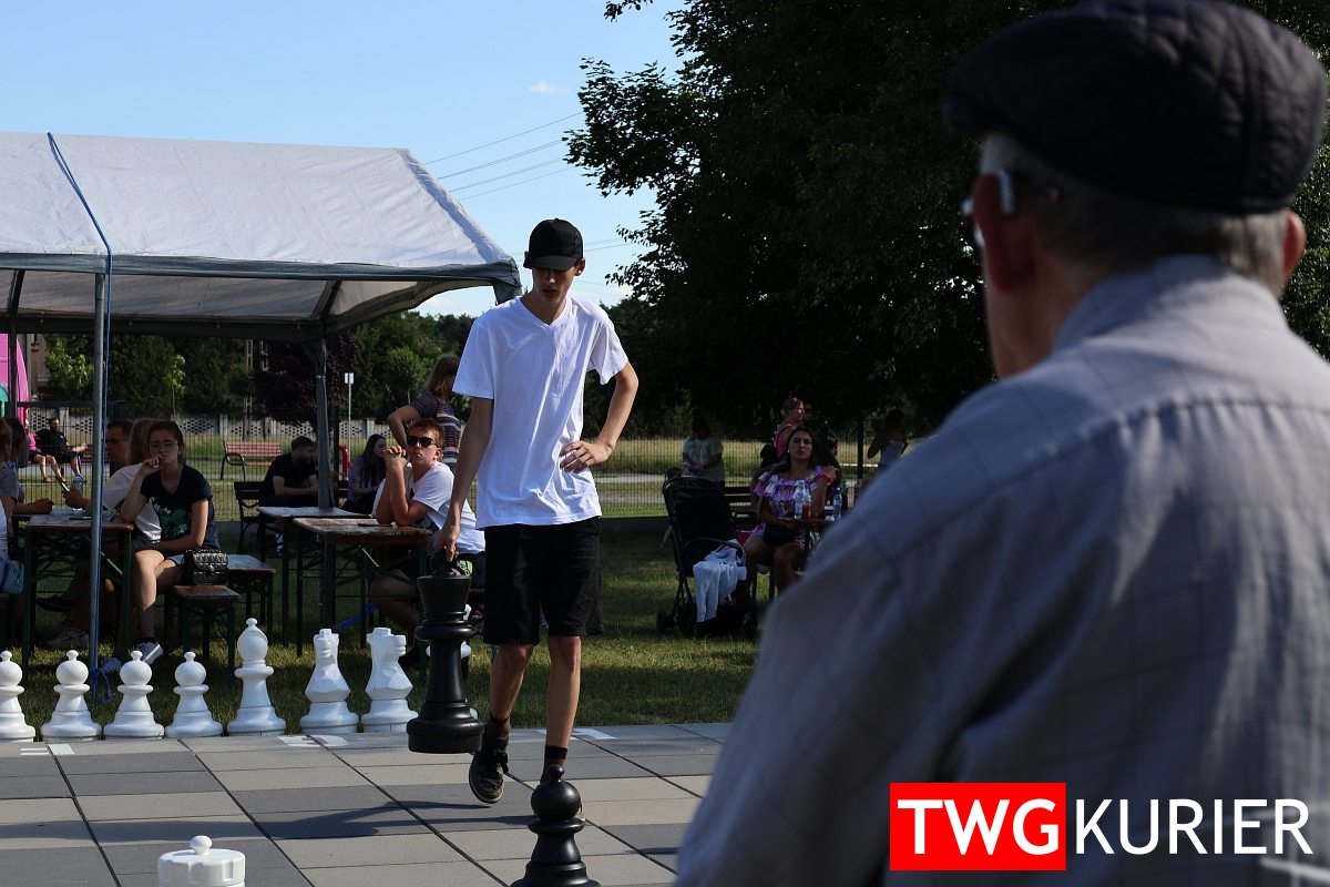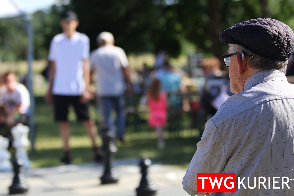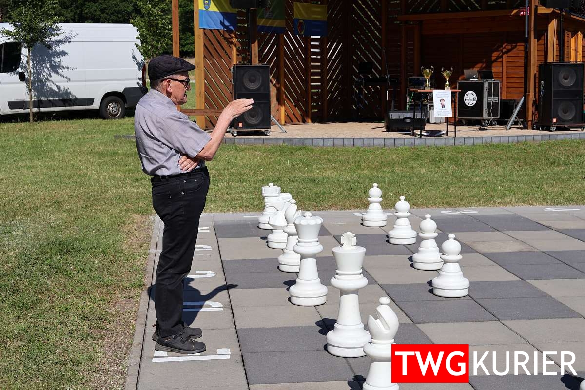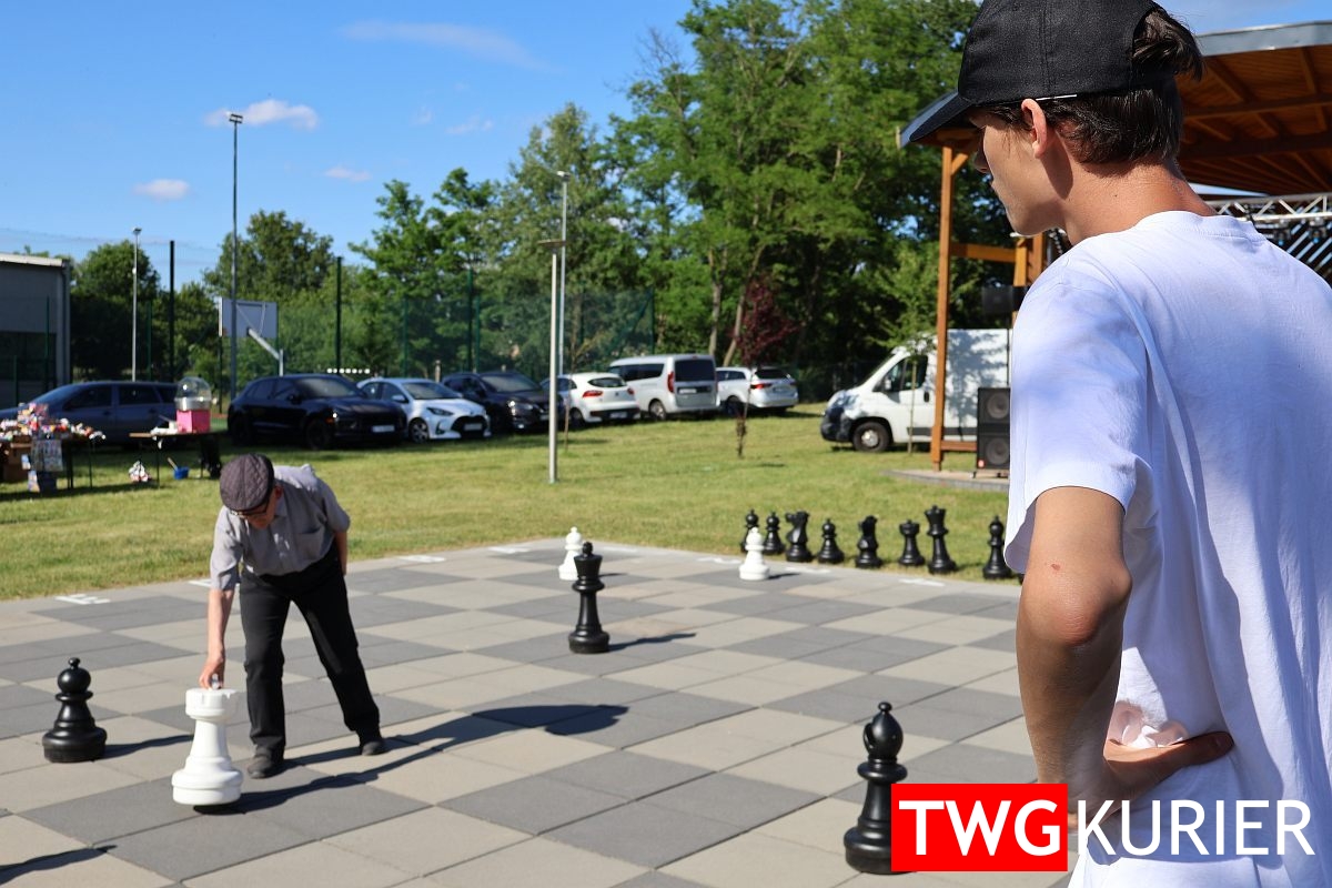 Na początek – cisza, skupienie, intelektualne napięcie. Plenerowy turniej szachowy rozgrywany na gigantycznej terenowej planszy przypominał sceny z filmów o królewskich pojedynkach. W kategorii juniorów zwyciężył młody taktyk Łukasz Hajda, a wśród seniorów triumfował Pan Józef Tronina. Całości przewodził szachowy komentator, Pan Bernard Opara – jego opowieści o strategiach nadawały grze nowy wymiar.