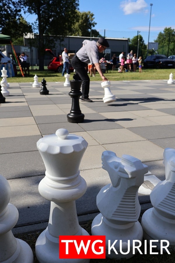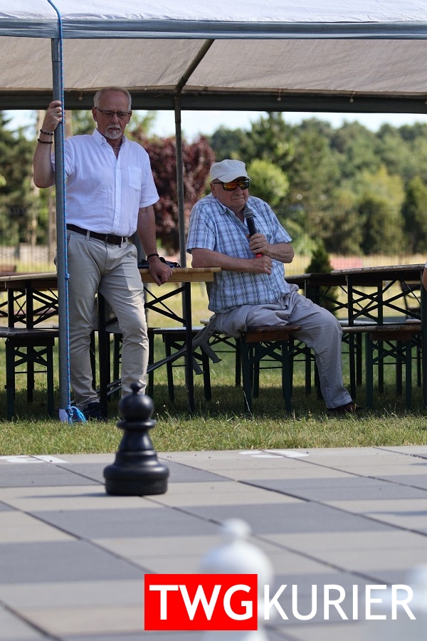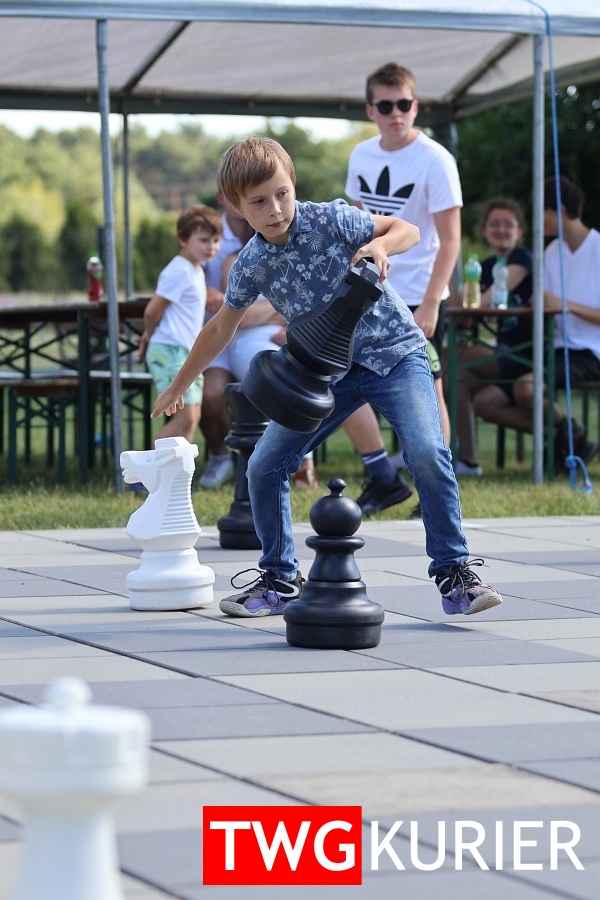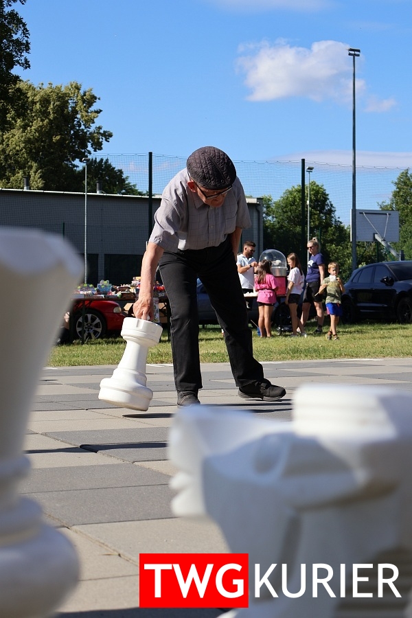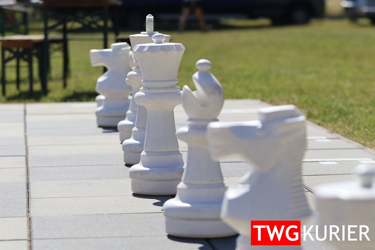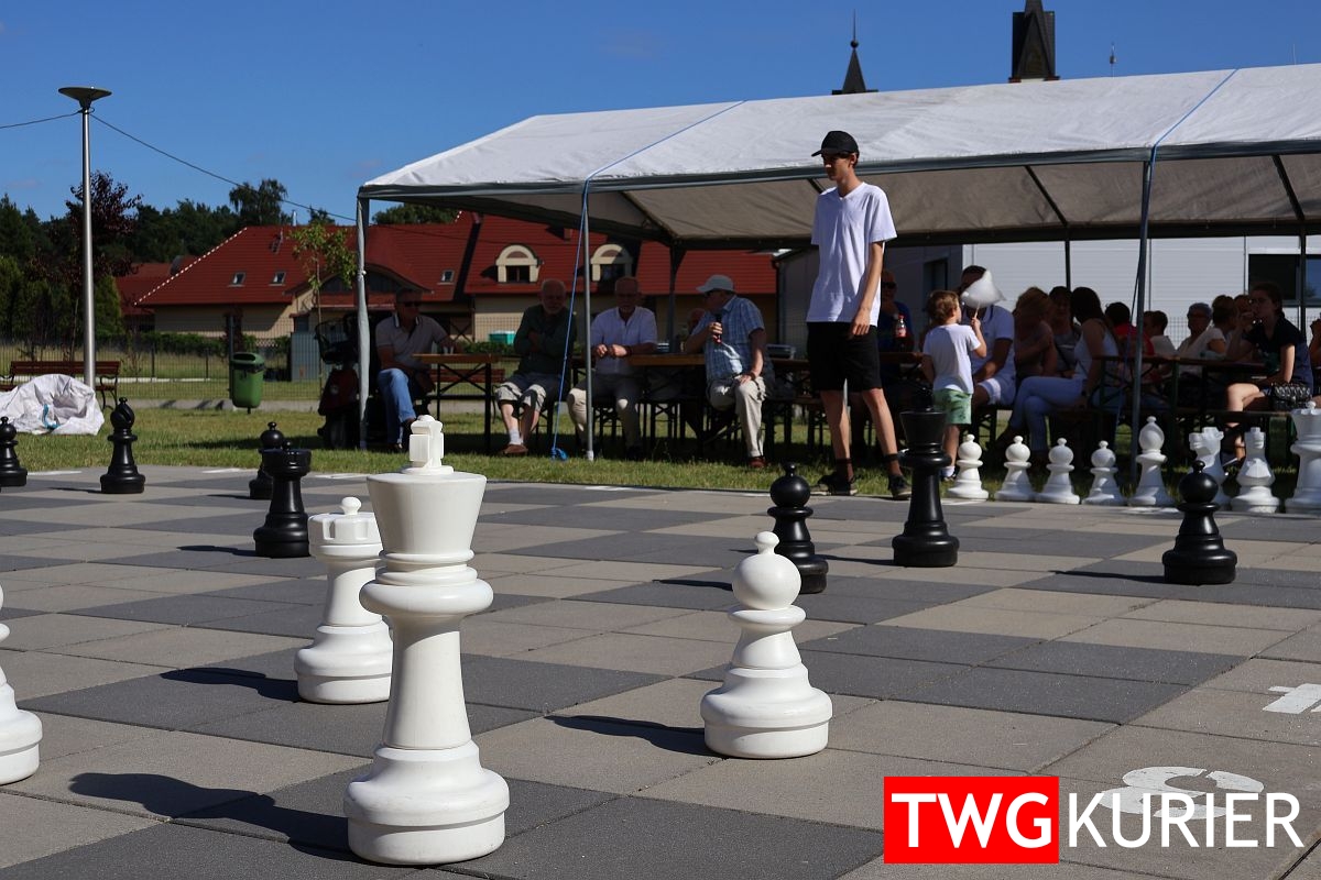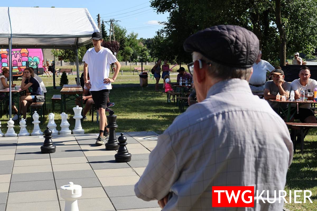 Na początek – cisza, skupienie, intelektualne napięcie. Plenerowy turniej szachowy rozgrywany na gigantycznej terenowej planszy przypominał sceny z filmów o królewskich pojedynkach. W kategorii juniorów zwyciężył młody taktyk Łukasz Hajda, a wśród seniorów triumfował Pan Józef Tronina. Całości przewodził szachowy komentator, Pan Bernard Opara – jego opowieści o strategiach nadawały grze nowy wymiar.