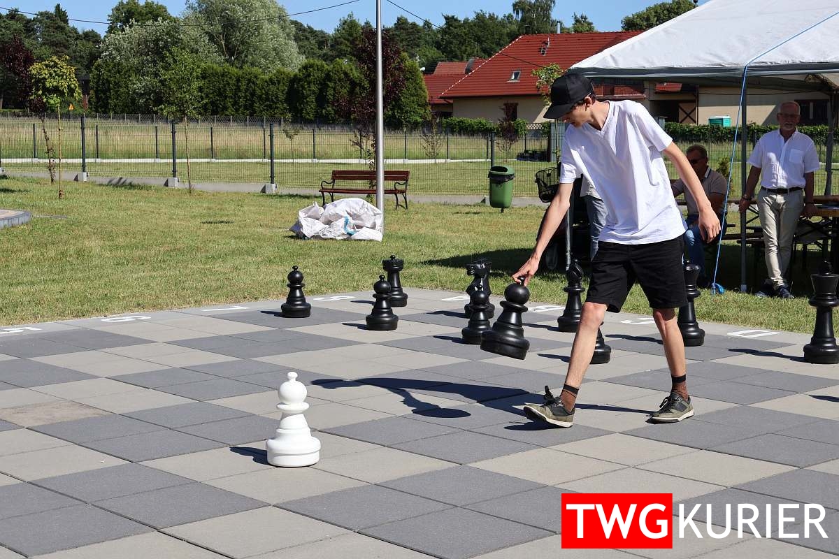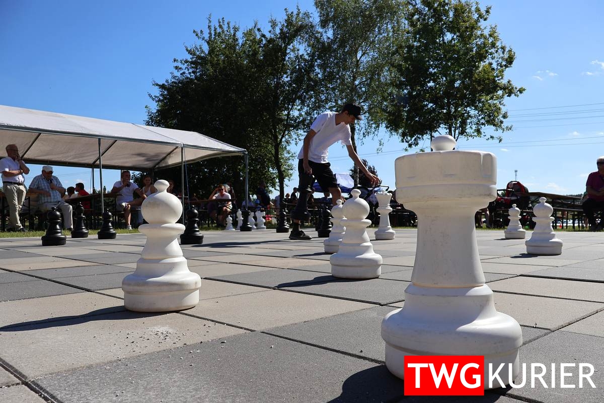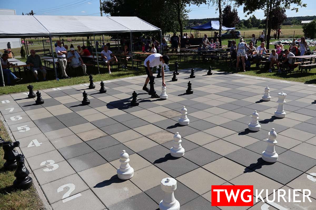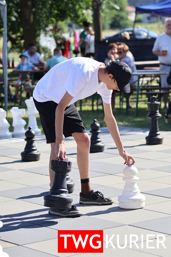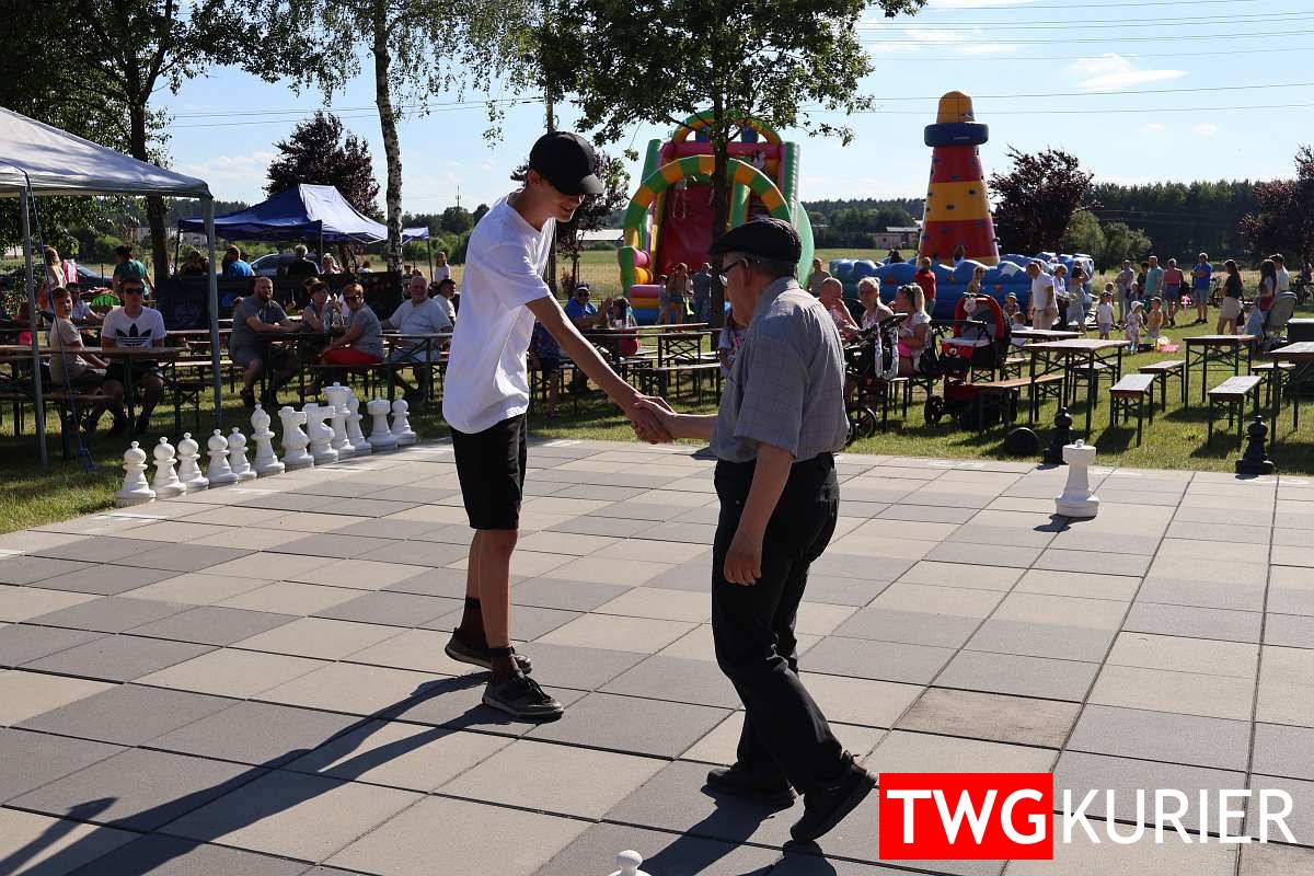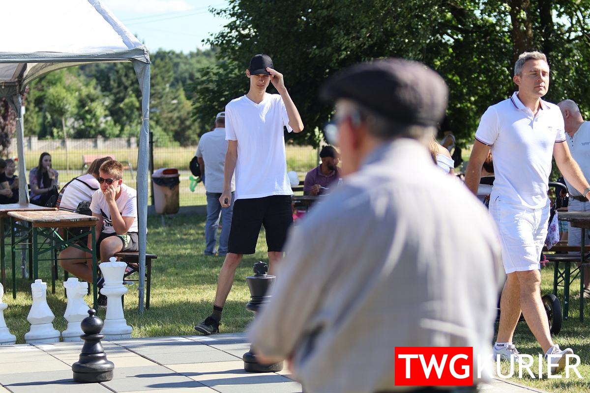 Na początek – cisza, skupienie, intelektualne napięcie. Plenerowy turniej szachowy rozgrywany na gigantycznej terenowej planszy przypominał sceny z filmów o królewskich pojedynkach. W kategorii juniorów zwyciężył młody taktyk Łukasz Hajda, a wśród seniorów triumfował Pan Józef Tronina. Całości przewodził szachowy komentator, Pan Bernard Opara – jego opowieści o strategiach nadawały grze nowy wymiar.