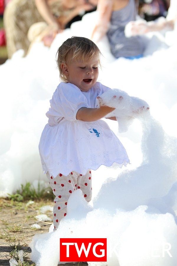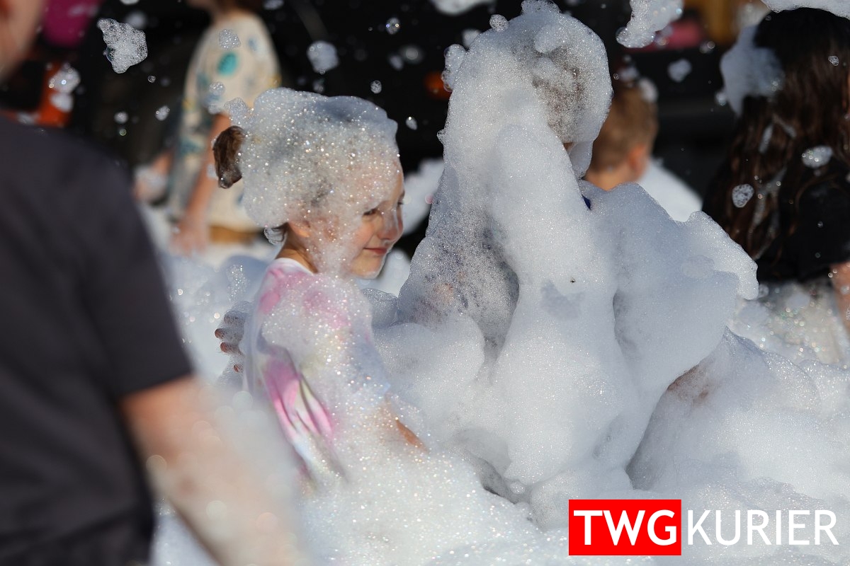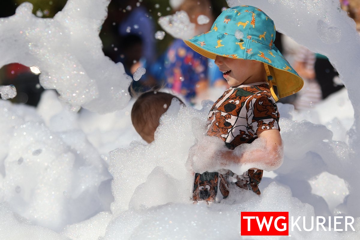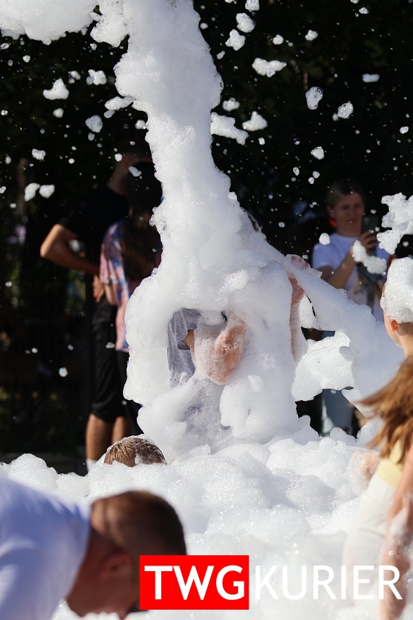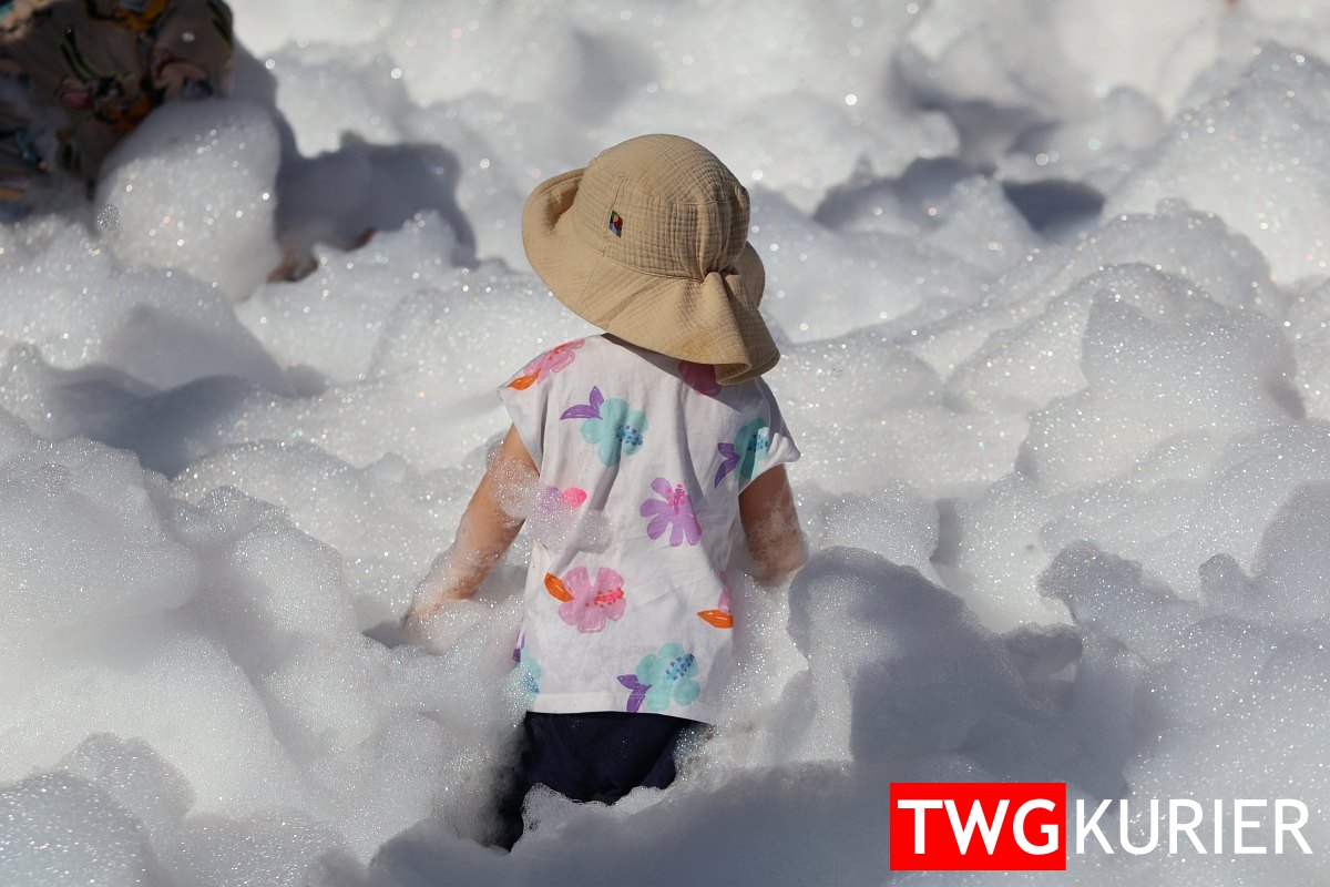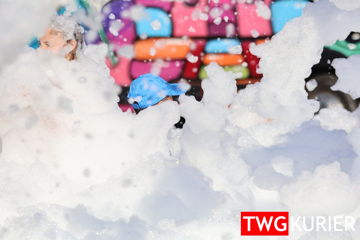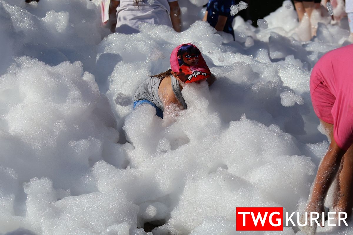 Gdy tylko firma BARTEX z Kochłowic włączyła urządzenie do produkcji piany, dzieci porzuciły gry planszowe, zjeżdżalnie i zdrowy rozsądek, zanurzając się w piankowej chmurze absolutnej beztroski. Skaczące, nurkujące, znikające w kłębach białej radości – wyglądały jak żywa reklama szczęśliwego dzieciństwa. Rodzice łapali się za głowy próbując rozpoznać swoje pociechy, które zniknęły wśród bąbelków. Czy wszystkie wróciły? Mamy nadzieję że tak. Czy w tych samych butach? Tego nie gwarantujemy.
