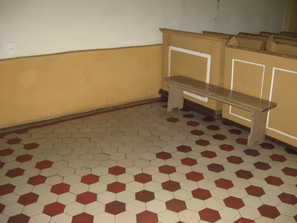 Wejście do krypty zaznaczone jasnymi kafelkami