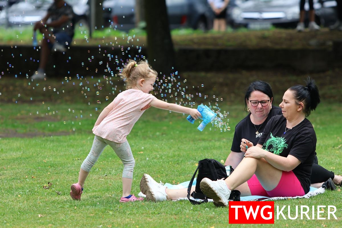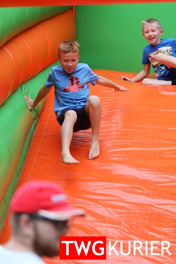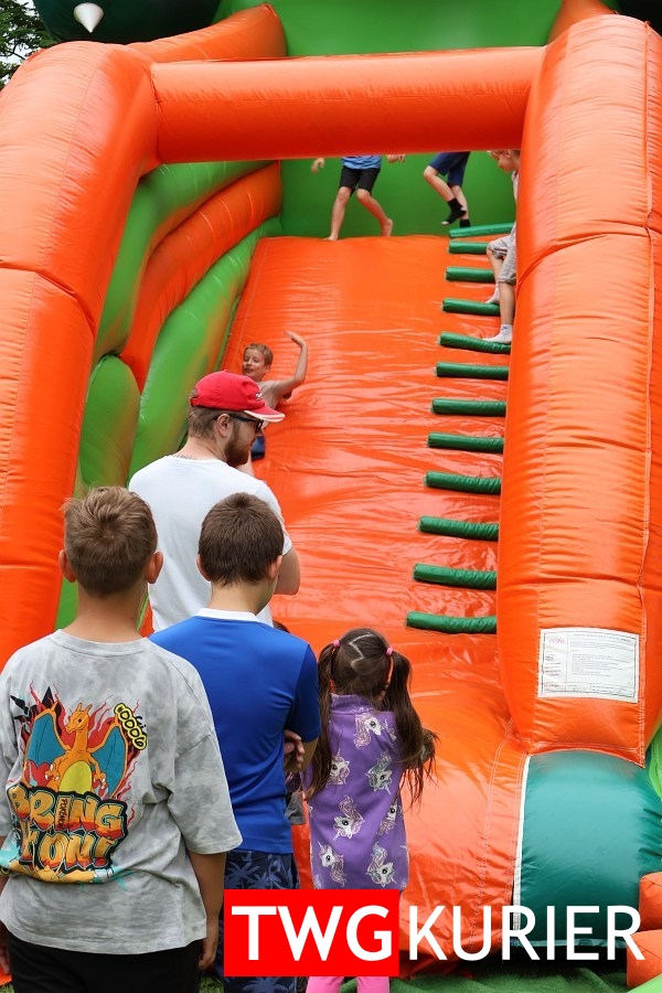 A potem… bum! Ruchowe szaleństwo opanowało dmuchańce. Trampolina stała się miejscem, gdzie dzieci odbijały się w stronę chmur, a kolejka chętnych przypominała te z PRL-u – tylko bardziej uśmiechnięta. Gdzieś obok łucznicze duo – Marcin i Filip Szeląg – uczyło, jak z gracją trafiać w wilka (bez szkód dla flory i fauny), a roboty z „Młodego Konstruktora” z Tarnowskich Gór z gracją przejęły strefę przyszłości.