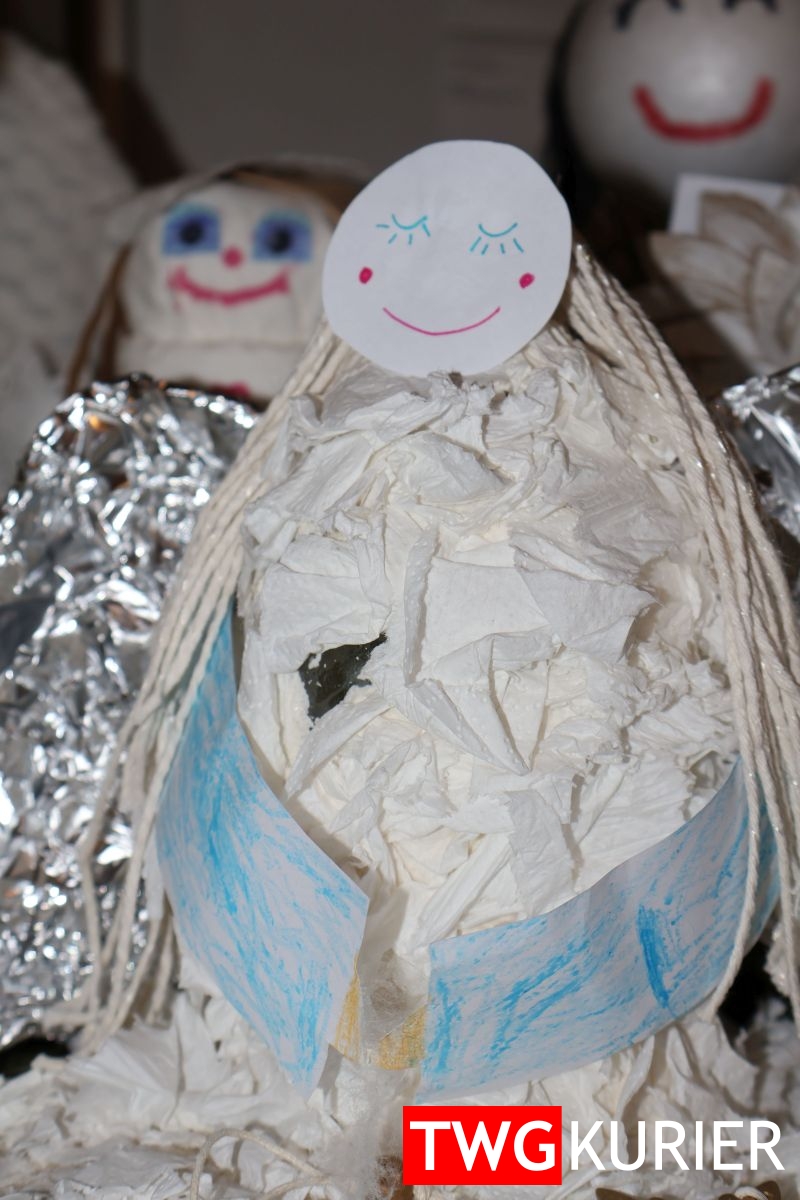 Wydarzenie wykorzystano także do wręczenia nagród w konkursie ogłoszonym przez Przedszkole w Boruszowicach pod nazwą „Eko-Anioł”. – To była już czwarta edycja konkursu. Napłynęły 53 prace z gmin Tworóg, Krupski Młyn i Tarnowskie Góry. Konkurs był adresowany do dzieci przedszkolnych i uczniów klas 1-3. Tym razem podjęliśmy temat ekologii – informuje organizatorka konkursu, Dorota Stokłosa z Przedszkola w Boruszowicach. W tym roku współorganizatorem była Gmina Tworóg, która w ramach promocji projektu „Śląskie. Przywracamy błękit” wręczyła wszystkim uczestnikom upominki. Prace przedszkolaków można było podziwiać podczas rodzinnego kolędowanie, wcześniej wystawiono je w holu Urzędu Gminy.