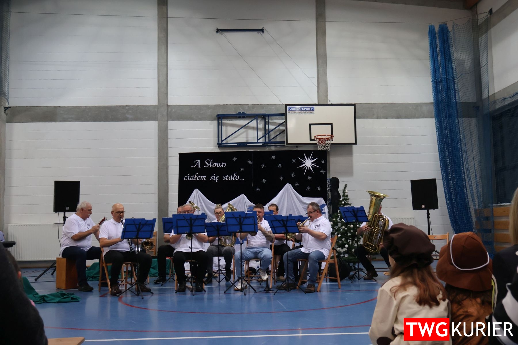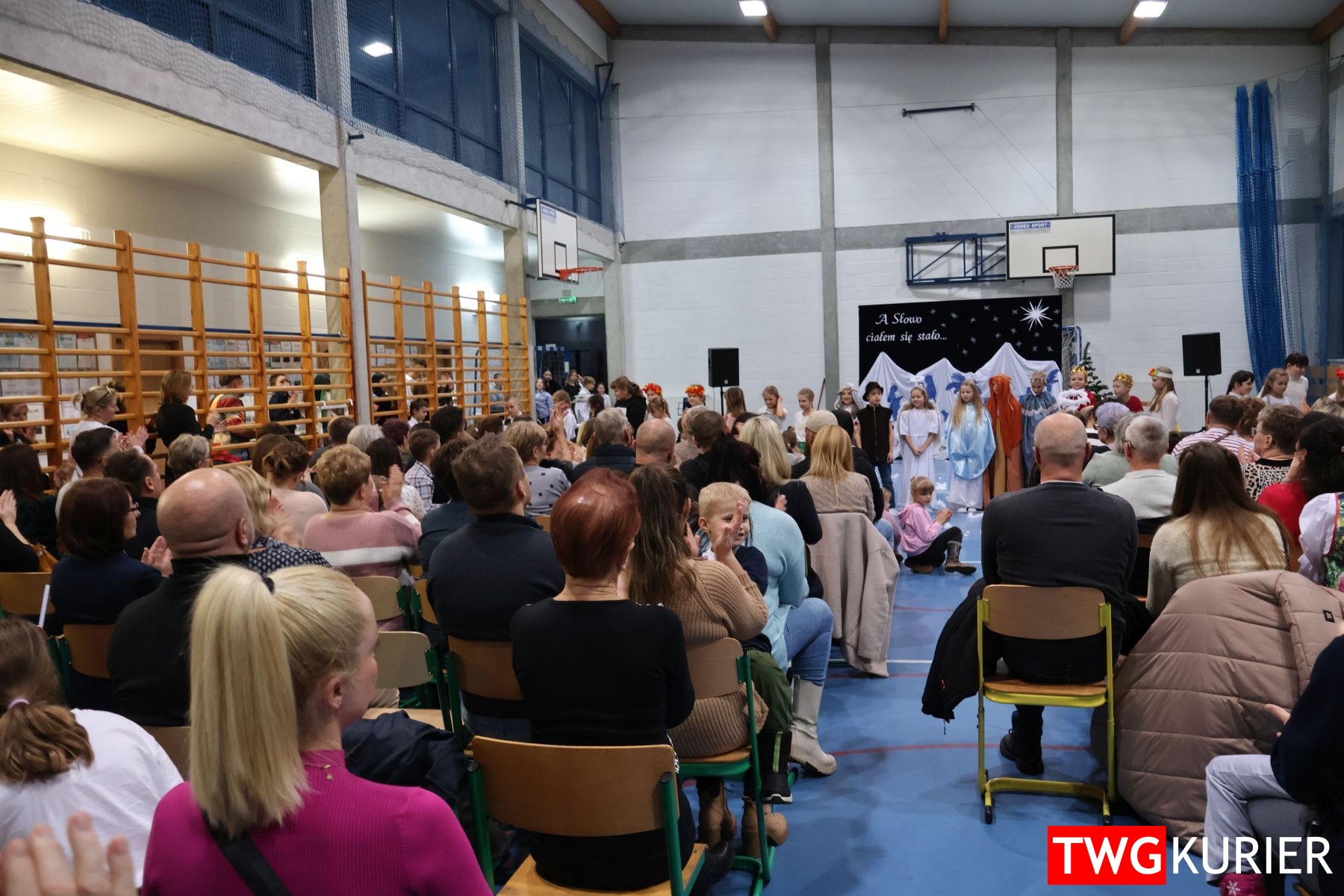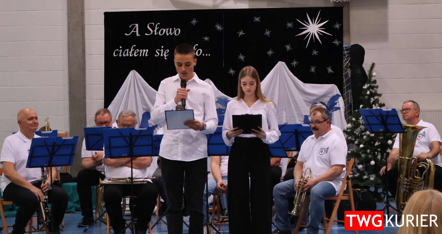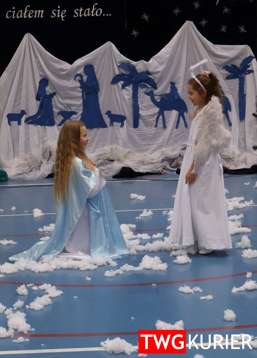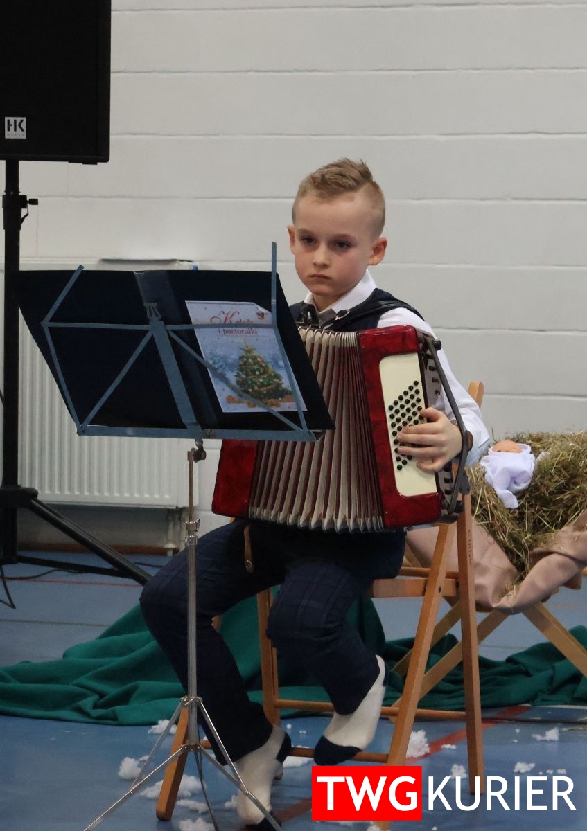 Na scenie sporo się działo, jednak motyw przewodni – Boże Narodzenie – był bardzo wyraźny. Przedszkolaki oraz uczniowie klas II i III zaprezentowali jasełka. Z kolei w muzyczny, świąteczny nastrój wprowadziła publikę lokalna Orkiestra Dęta. Nie zabrakło pokazu talentów, czyli występów wokalnych i instrumentalnych w wykonaniu uczniów. Szkolnemu chórowi udało się nawet zaangażować widownię do wspólnego śpiewania!