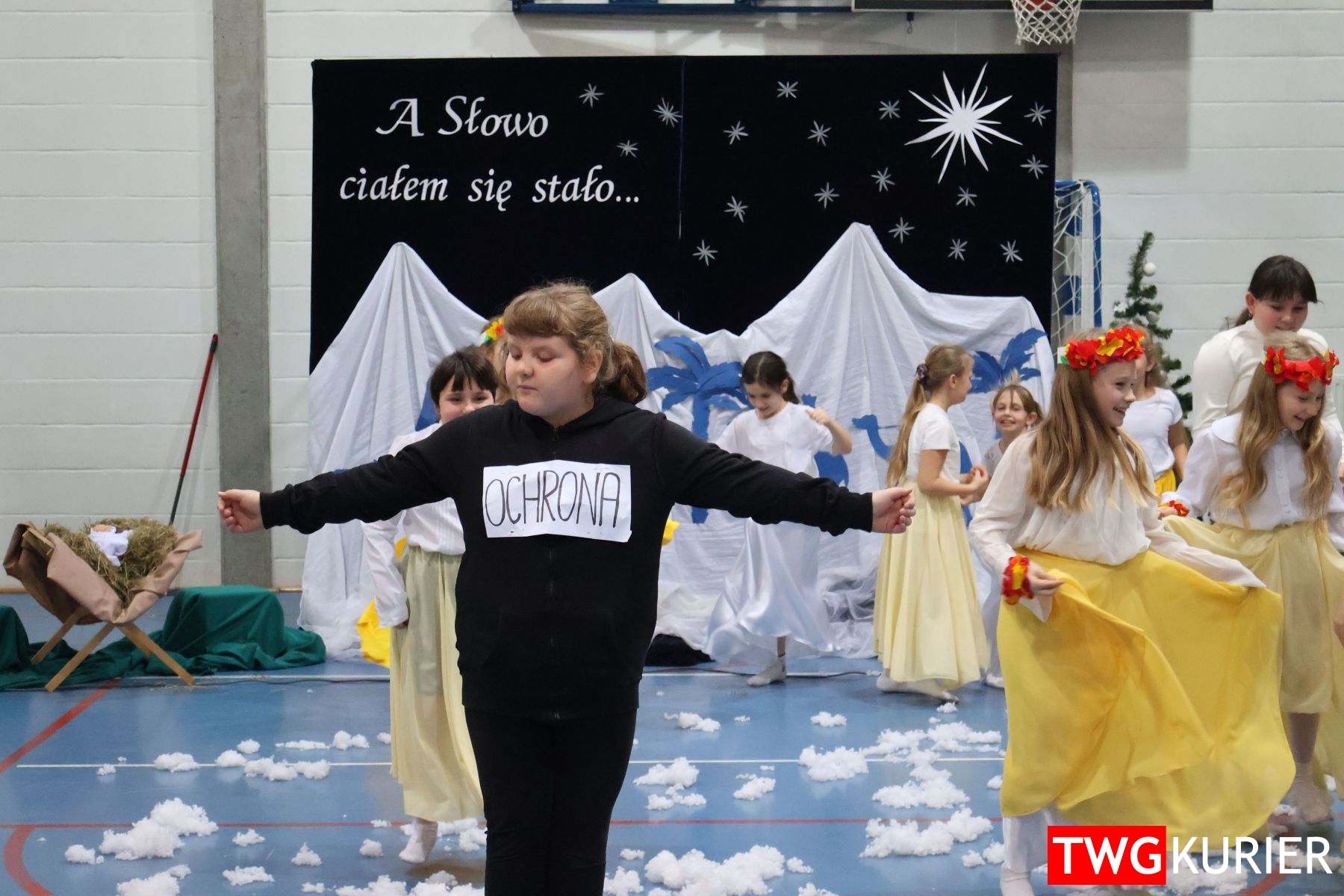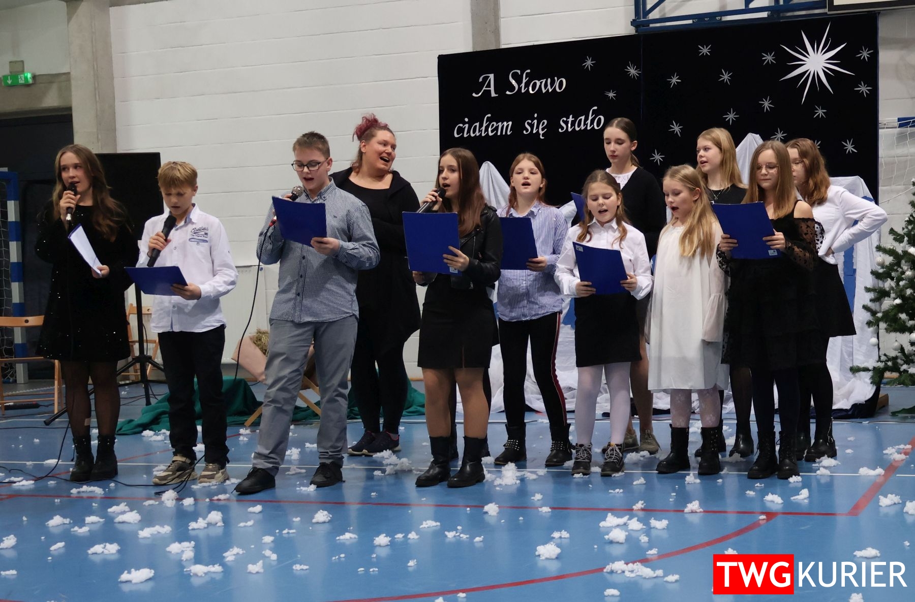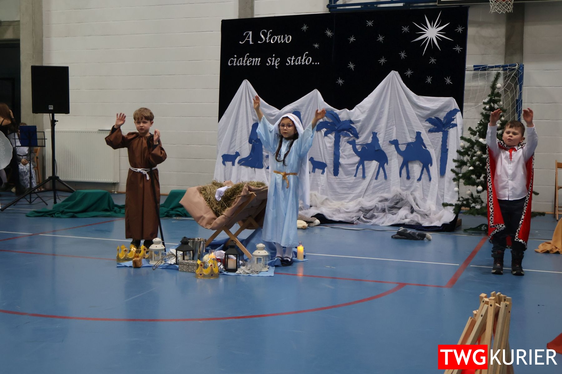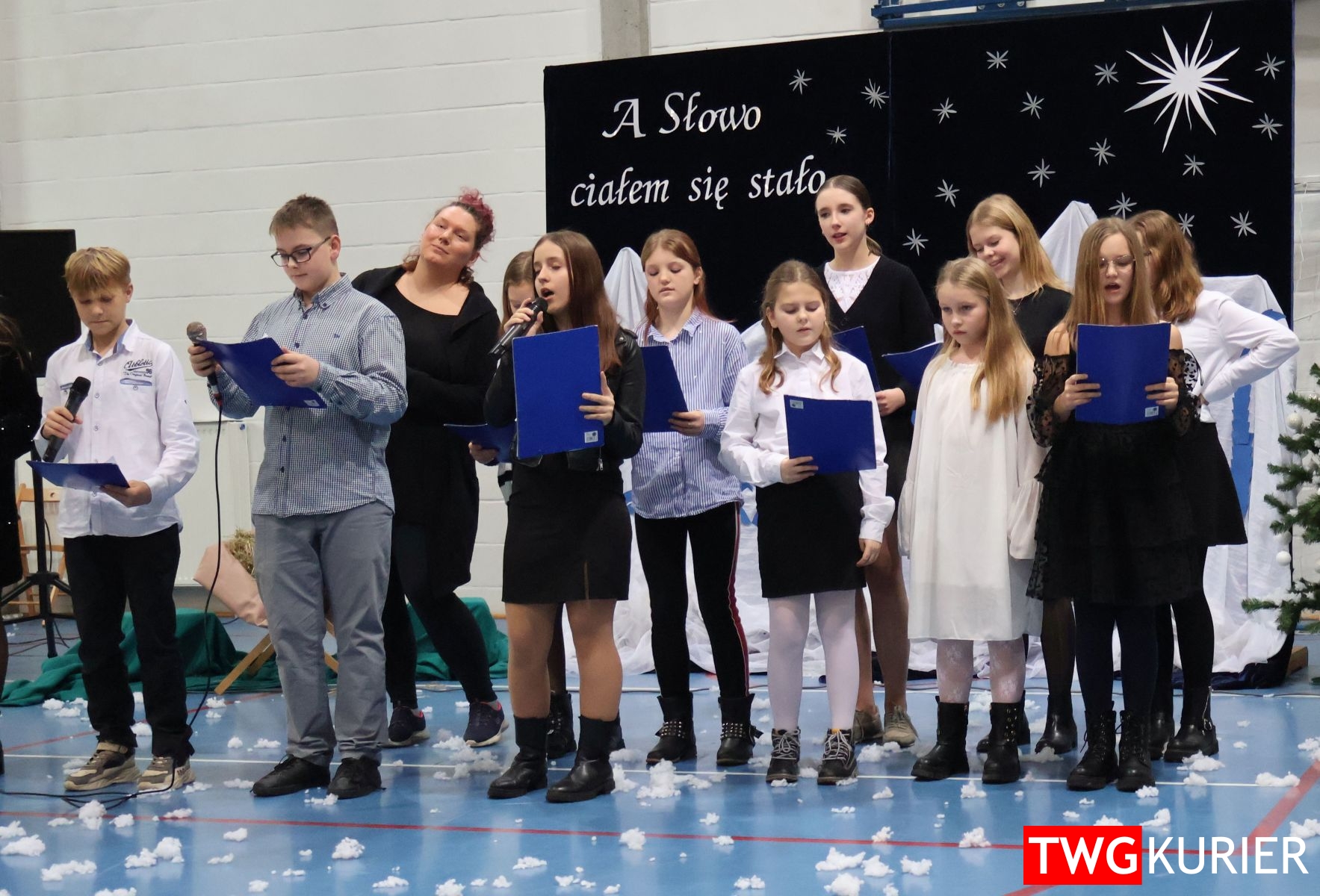 Na scenie sporo się działo, jednak motyw przewodni – Boże Narodzenie – był bardzo wyraźny. Przedszkolaki oraz uczniowie klas II i III zaprezentowali jasełka. Z kolei w muzyczny, świąteczny nastrój wprowadziła publikę lokalna Orkiestra Dęta. Nie zabrakło pokazu talentów, czyli występów wokalnych i instrumentalnych w wykonaniu uczniów. Szkolnemu chórowi udało się nawet zaangażować widownię do wspólnego śpiewania!