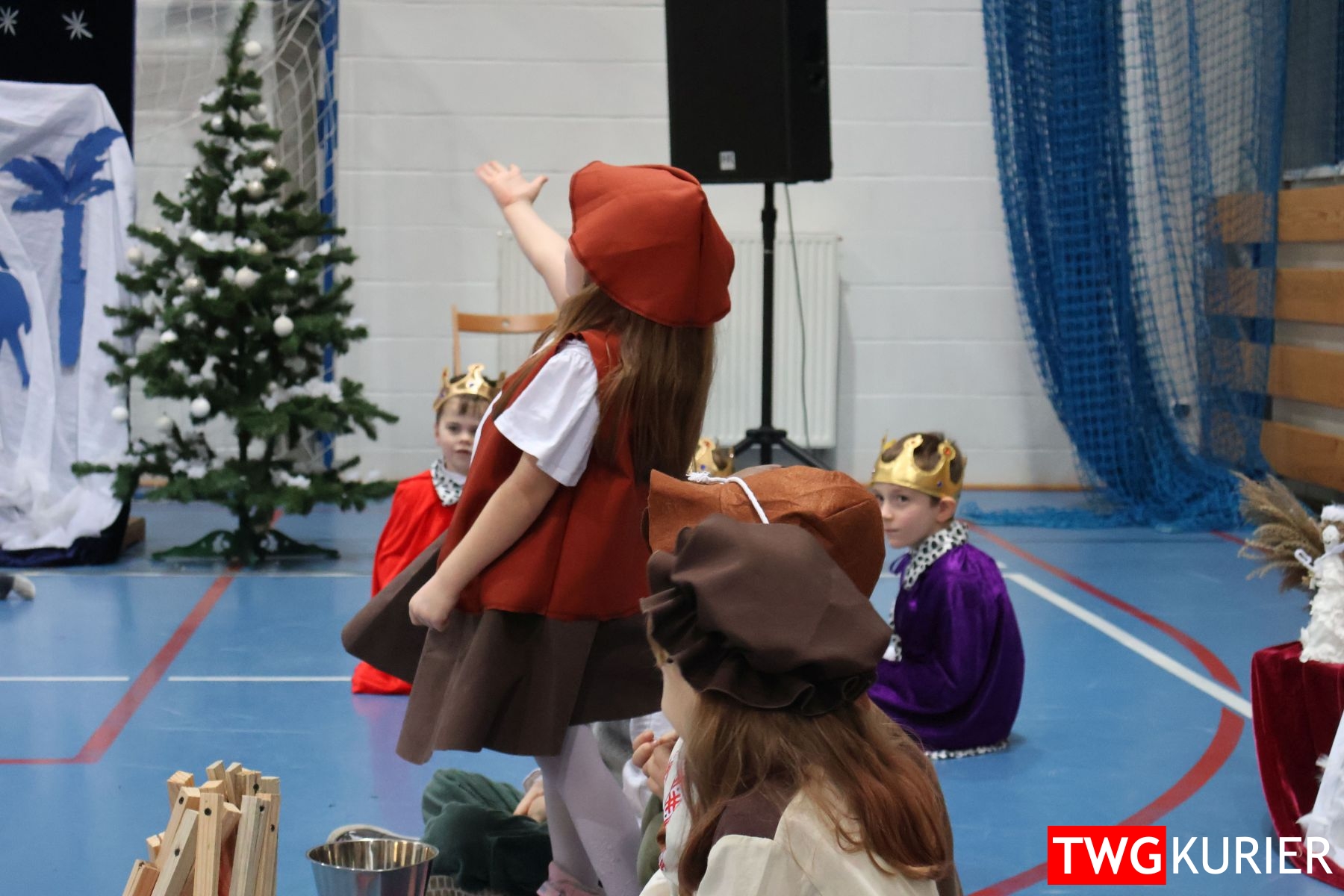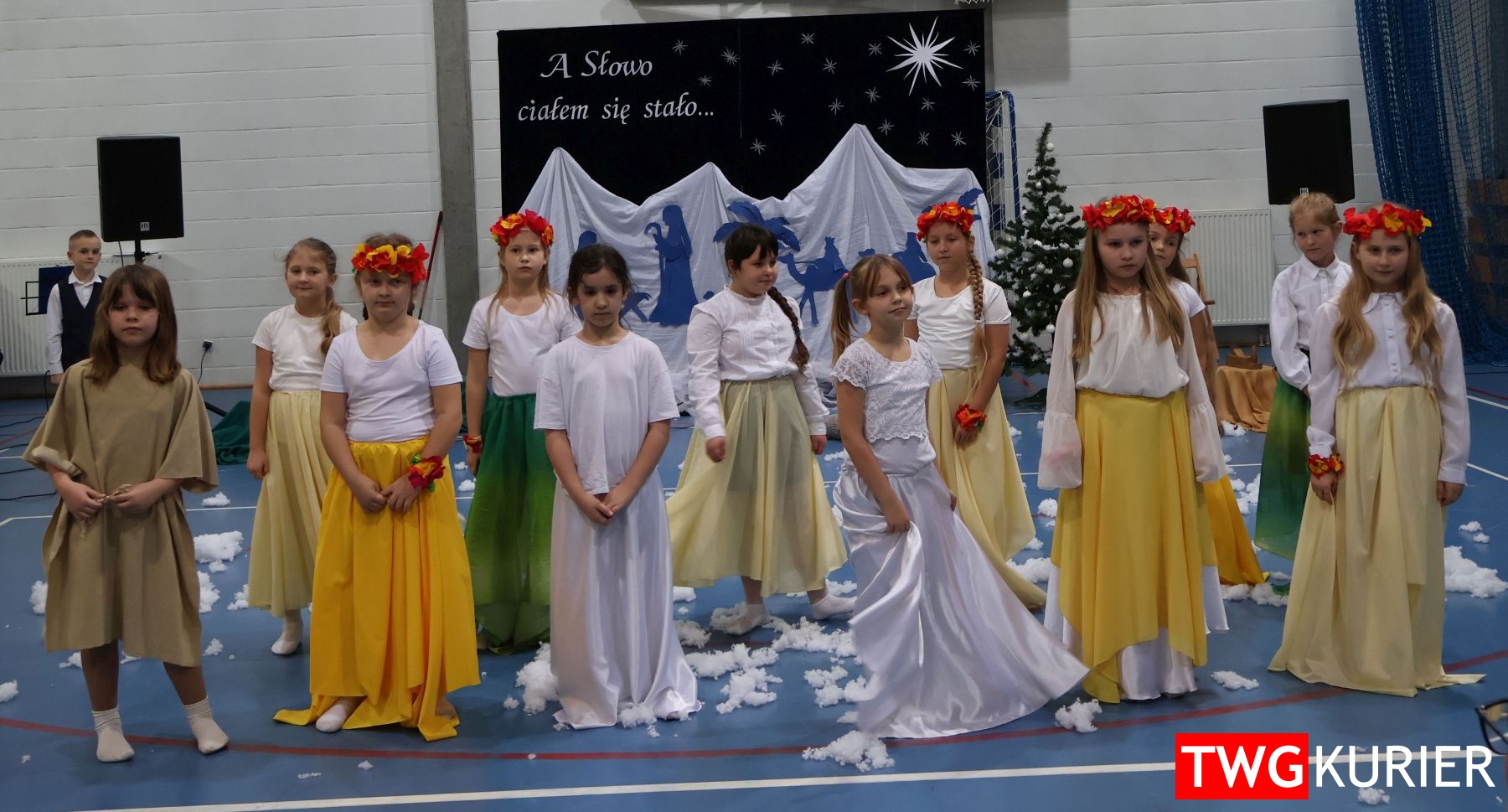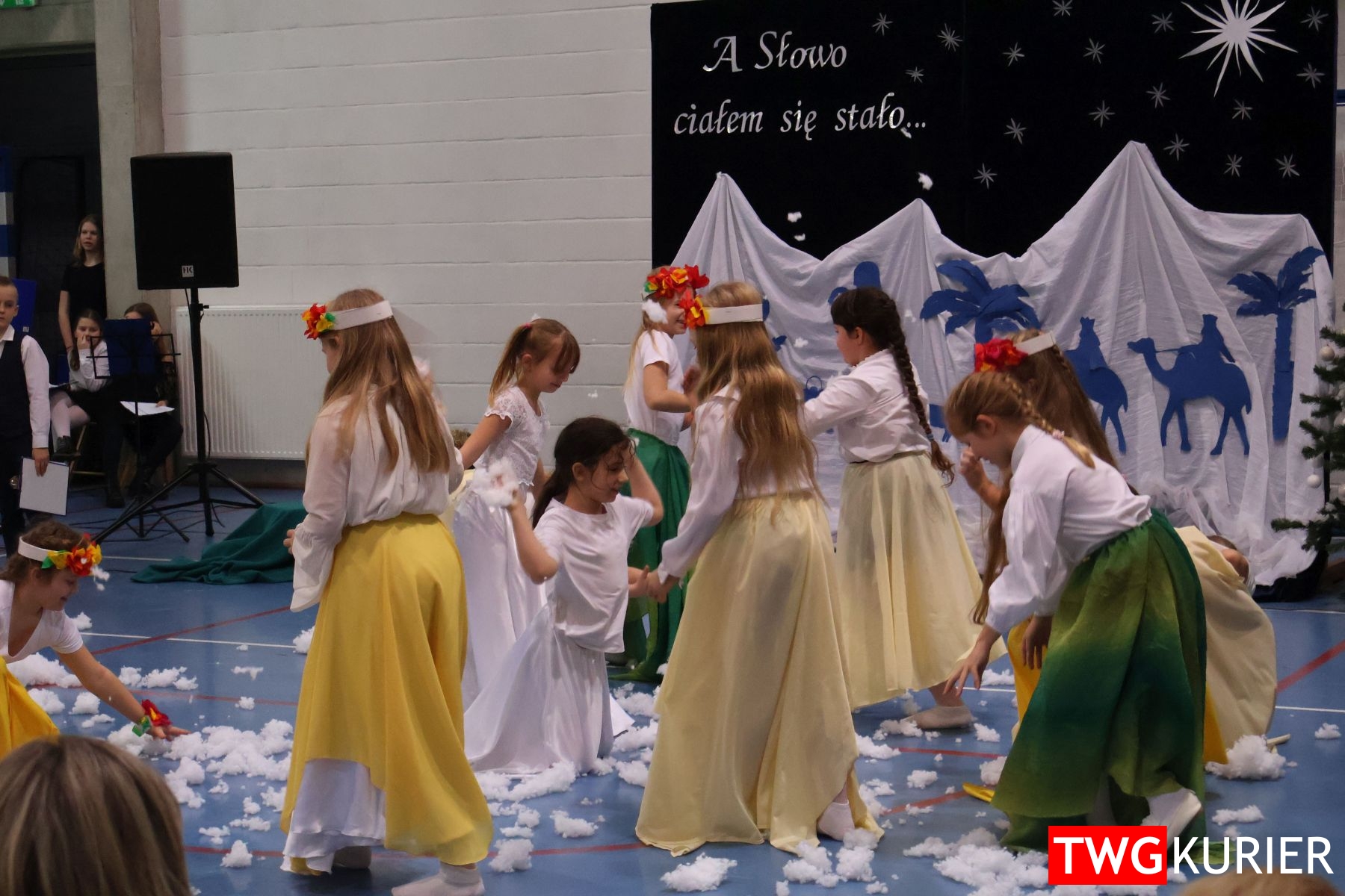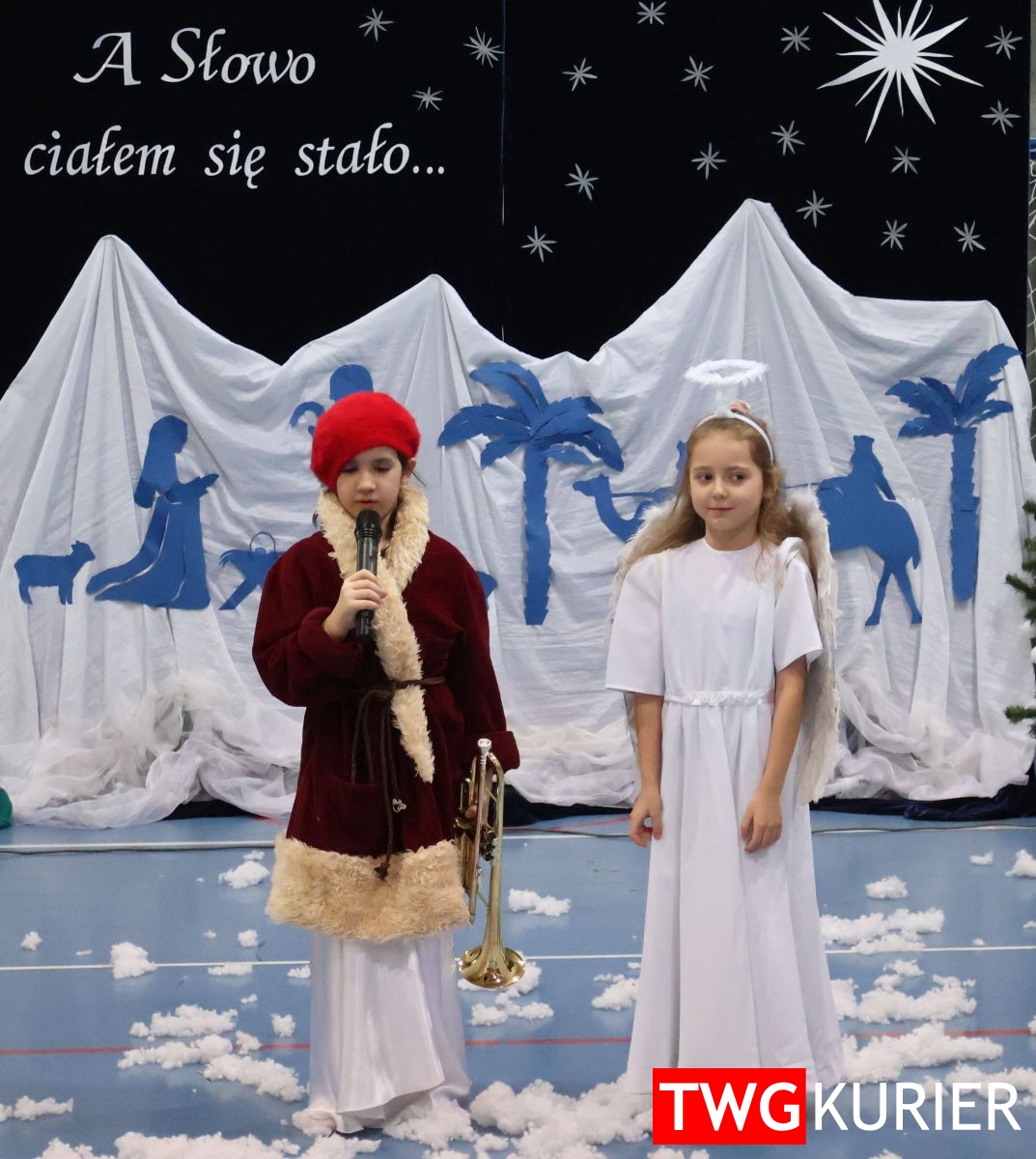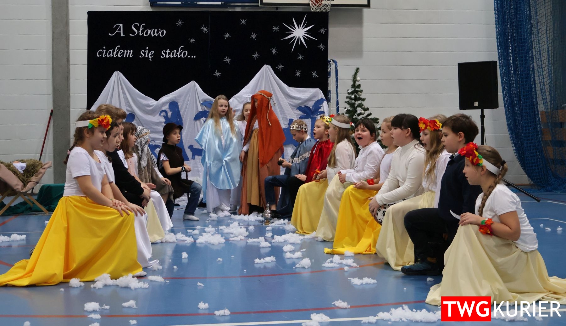 Na scenie sporo się działo, jednak motyw przewodni – Boże Narodzenie – był bardzo wyraźny. Przedszkolaki oraz uczniowie klas II i III zaprezentowali jasełka. Z kolei w muzyczny, świąteczny nastrój wprowadziła publikę lokalna Orkiestra Dęta. Nie zabrakło pokazu talentów, czyli występów wokalnych i instrumentalnych w wykonaniu uczniów. Szkolnemu chórowi udało się nawet zaangażować widownię do wspólnego śpiewania!