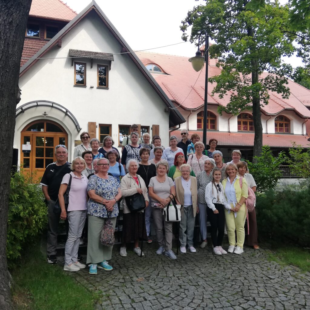 Członkowie Klubu Senior+ w dniu 19.07.2025 r. wybrali się na wycieczkę do Katowic. Postanowiliśmy tym razem zwiedzić ciekawe miejsca w naszej śląskiej stolicy, a mianowicie dzielnice Giszowiec i Nikiszowiec. W sobotni, słoneczny ranek udaliśmy się autokarem do Giszowca, gdzie czekała na nas pani przewodnik Joanna Siedlaczek-Pluta.