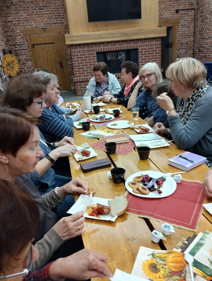 W dniu 22 maja 2025r. członkowie Klubu Senior+ z Nowej Wsi Tworoskiej zorganizowali  „Majówkę” w Stodole w Brynku. Skorzystali z gościnności Nadleśnictwa Brynek  i od godziny 15.00 biesiadowali w nowo wyremontowanej Stodole. Pogoda niestety nie dopisała, padał deszcz, więc i nie odbył się spacer  po „Ścieżce Edukacyjnej”. Natomiast  Leśniczy z Nowej Wsi Tworoskiej, Pan Maciej Hulbój pięknie opowiedział o swojej pracy i zmianach, jakie nastąpiły ostatnio w zarządzaniu polskimi lasami. Zachęcił do spacerów po okolicznych lasach, szczególnie do odwiedzenia pięknych leśnych łąk w leśnictwie Nowa Wieś Tworoska. Można tam podziwiać rośliny nie spotykane w innych rejonach. Następnie były pytania z naszej strony, na wszystkie otrzymaliśmy wyczerpujące odpowiedzi. Dowiedzieliśmy się też sporo szczegółów dotyczących remontu w Stodole. Po prelekcji wszyscy częstowali się upieczonymi kiełbaskami i rozmawiali w mniejszych grupach. Panowała bardzo miła atmosfera. Na zakończenie zrobiliśmy sobie pamiątkowe zdjęcie. Mimo niesprzyjającej aury „Majówka” się udała.