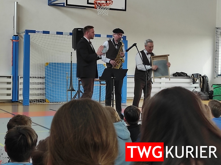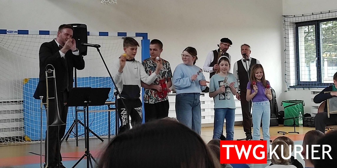 Podczas występu widzowie mogli usłyszeć znane utwory w aranżacjach inspirowanych stylem dixielandowym. Muzycy szybko nawiązali świetny kontakt z publicznością, zachęcając uczniów do wspólnej zabawy, klaskania i śpiewania.