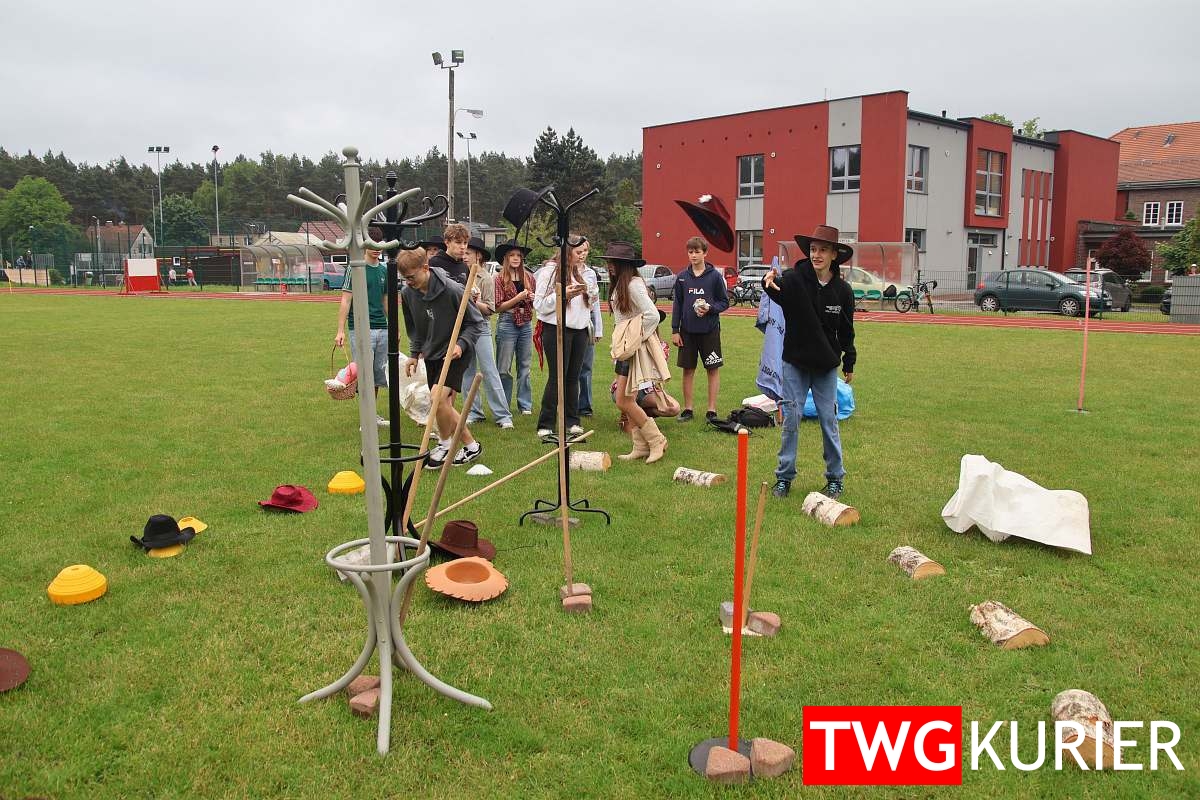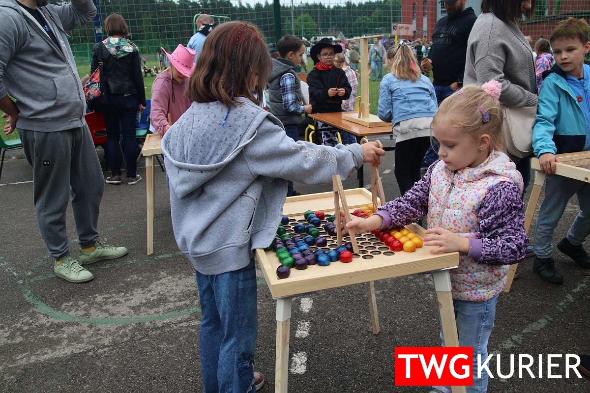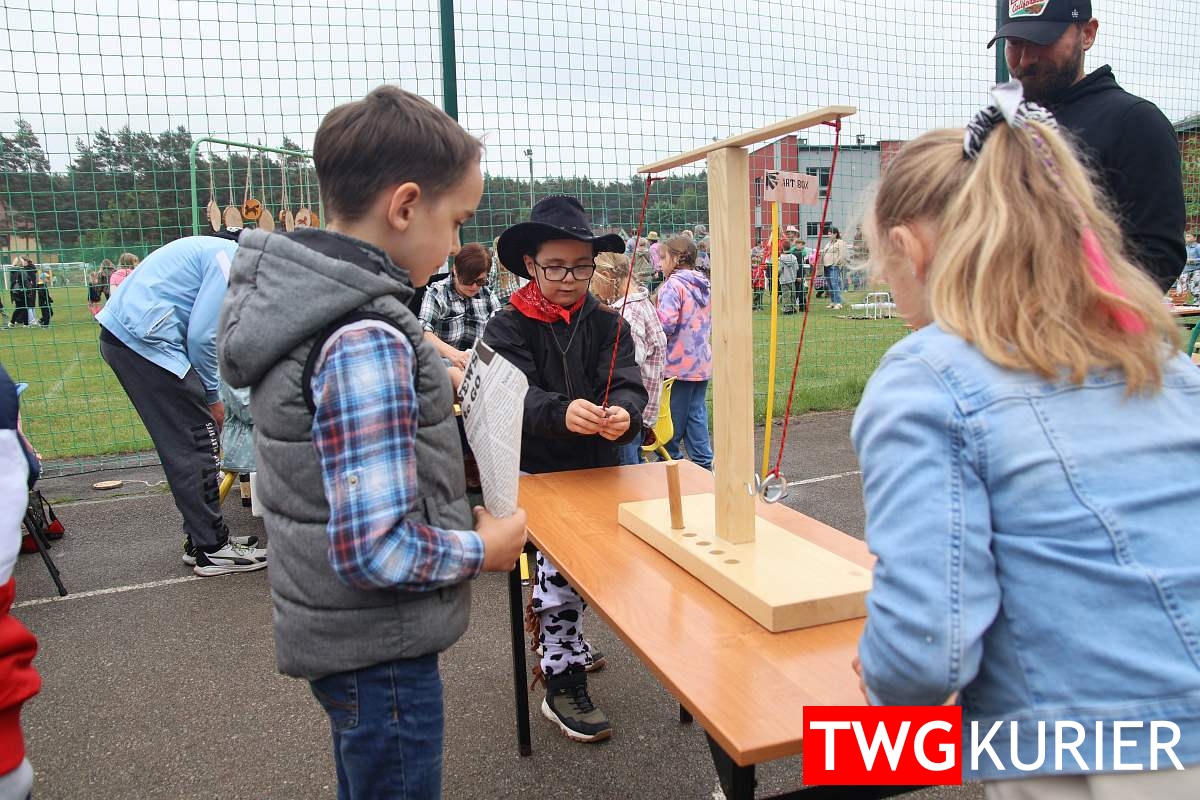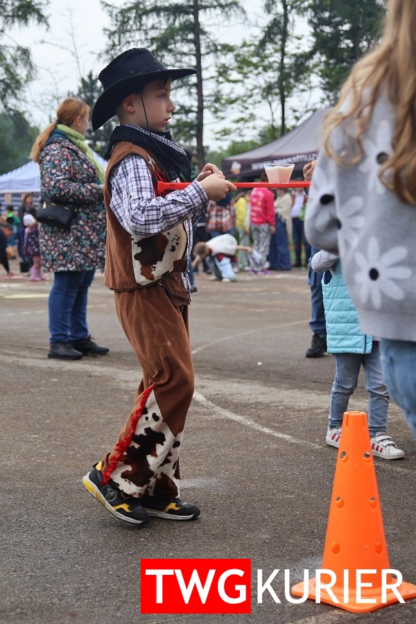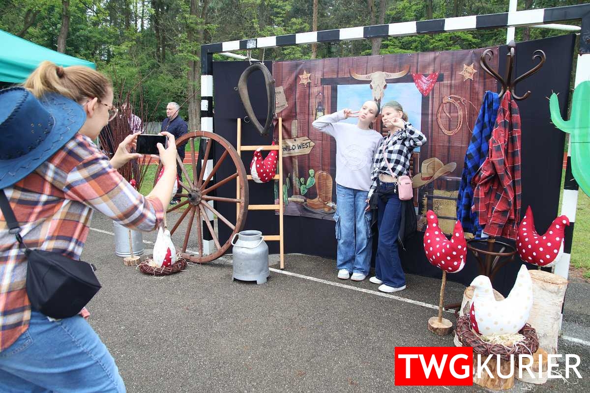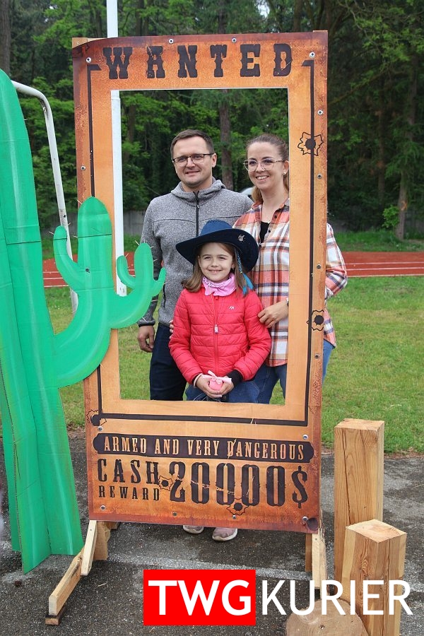 30 maja o godzinie 16.00 teren Szkoły Podstawowej w Tworogu zamienił się w prawdziwą krainę rodem z Dzikiego Zachodu. Wszystko za sprawą wyjątkowego Dnia Dziecka w stylu kowbojskim, który obfitował w atrakcje, niespodzianki i mnóstwo dobrej zabawy. W klimat Dzikiego Zachodu wprowadzili nas już na samym początku uczniowie klas ósmych, prezentując przepięknie wykonany taniec, który zachwycił wszystkich zgromadzonych i otworzył wydarzenie z wielkim rozmachem. W dalszej części uczniowie klas 1–3, pamiętając o niedawnym Dniu Matki, zaprezentowali wzruszający repertuar muzyczny dla mamy i taty. Następnie klasy trzecie z przytupem zatańczyły „Skrzypka”, wprowadzając jeszcze więcej radości i country’owego ducha. Podczas imprezy dzieciom życzenia złożył wójt gminy Tworóg, pan Łukasz Ziob. Gościliśmy również Zespół Szkół Centrum Kształcenia Rolniczego w Nakle Śląskim, który odegrał niezwykle ważną rolę w tym wydarzeniu. To właśnie ta szkoła zapewniła uczniom mnóstwo atrakcji: popcorn, truskawki w czekoladzie, możliwość zdobycia certyfikatu w dojeniu krowy oraz prezentację swojej oferty edukacyjnej – idealnie wpisującej się w klimat imprezy. Wielką frajdą okazały się kowbojskie wyzwania: łapanie konia na lasso, hobby horsing, tor przeszkód ze szklanką mleka, rzucanie do puszek, skoki w workach, konkurencje z kapeluszami i zabawy z kolorową gumą. Nie zabrakło również warsztatów łuczniczych prowadzonych przez mistrzów Filipa i Marcina Szelągów, w których dzieci chętnie brały udział. Dla miłośników twórczej zabawy przygotowano stanowiska z artboxami, malowaniem na drewnie, robieniem gniotków, kolorowymi warkoczykami i koralikami. Ciekawym przerywnikiem były również gry stolikowe rozwijające logiczne myślenie i sprawność manualną. Nad wszystkim czuwał ratownik medyczny, który dodatkowo prowadził instruktaż z pierwszej pomocy. Strażacy i policjanci również zadbali o bezpieczeństwo i dodatkowe atrakcje dla najmłodszych. Dzięki dyspensie od księdza proboszcza mogliśmy z czystym sumieniem skorzystać z grillowych przysmaków podczas grill time’u, który – wraz z kawą i domowymi wypiekami – zapewnili niezastąpieni rodzice. Wielkie podziękowania kierujemy właśnie do Rodziców, których ogromne zaangażowanie, wsparcie i energia sprawiły, że ten dzień był pełen radości i uśmiechu. Całość wydarzenia została profesjonalnie i z humorem poprowadzona przez niezawodny zespół „Przerwa na kawę”, który zadbał o dobry nastrój i sprawną organizację atrakcji.