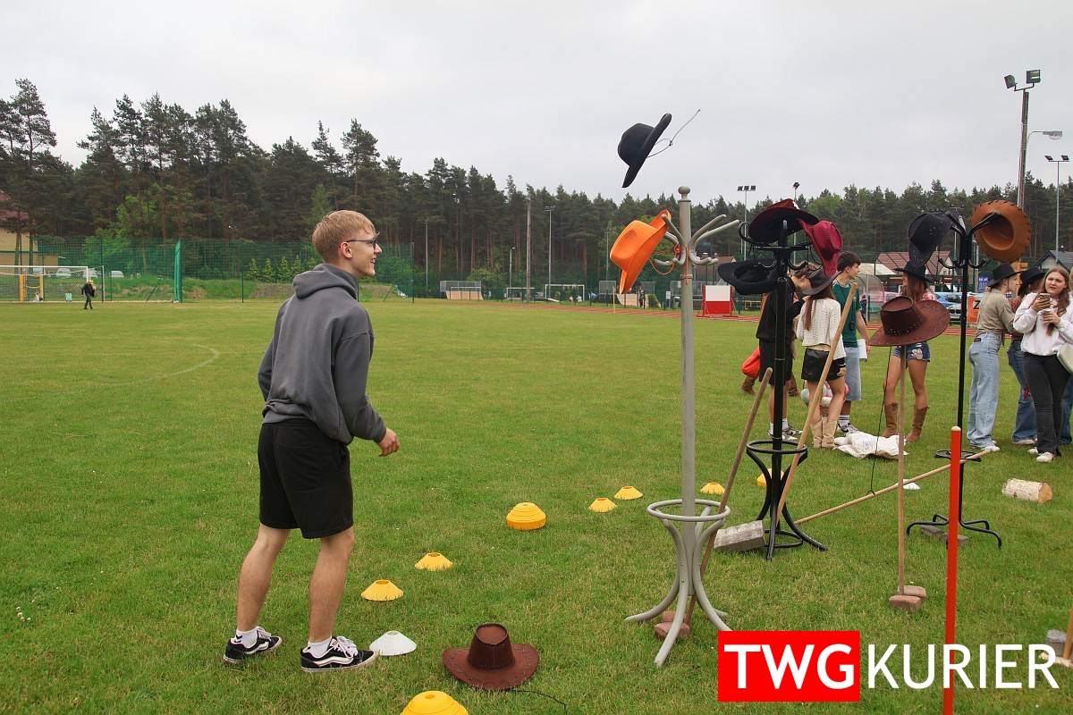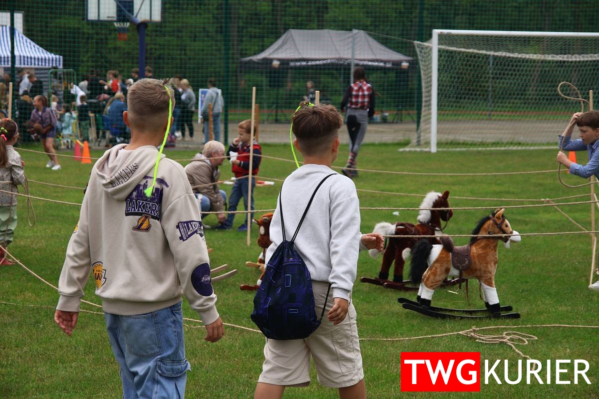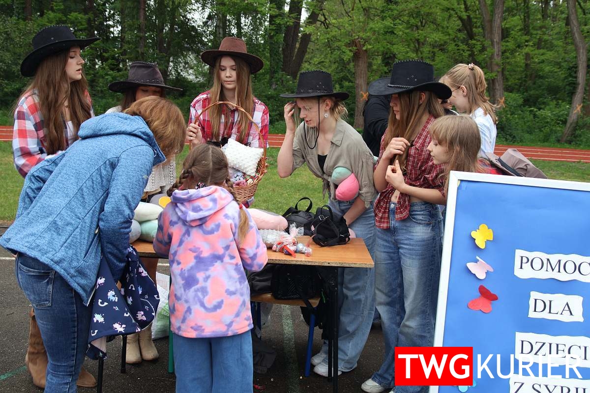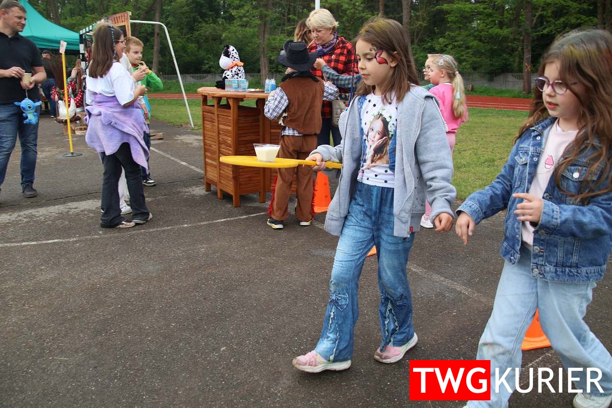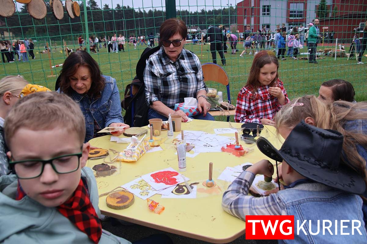 30 maja o godzinie 16.00 teren Szkoły Podstawowej w Tworogu zamienił się w prawdziwą krainę rodem z Dzikiego Zachodu. Wszystko za sprawą wyjątkowego Dnia Dziecka w stylu kowbojskim, który obfitował w atrakcje, niespodzianki i mnóstwo dobrej zabawy. W klimat Dzikiego Zachodu wprowadzili nas już na samym początku uczniowie klas ósmych, prezentując przepięknie wykonany taniec, który zachwycił wszystkich zgromadzonych i otworzył wydarzenie z wielkim rozmachem. W dalszej części uczniowie klas 1–3, pamiętając o niedawnym Dniu Matki, zaprezentowali wzruszający repertuar muzyczny dla mamy i taty. Następnie klasy trzecie z przytupem zatańczyły „Skrzypka”, wprowadzając jeszcze więcej radości i country’owego ducha. Podczas imprezy dzieciom życzenia złożył wójt gminy Tworóg, pan Łukasz Ziob. Gościliśmy również Zespół Szkół Centrum Kształcenia Rolniczego w Nakle Śląskim, który odegrał niezwykle ważną rolę w tym wydarzeniu. To właśnie ta szkoła zapewniła uczniom mnóstwo atrakcji: popcorn, truskawki w czekoladzie, możliwość zdobycia certyfikatu w dojeniu krowy oraz prezentację swojej oferty edukacyjnej – idealnie wpisującej się w klimat imprezy. Wielką frajdą okazały się kowbojskie wyzwania: łapanie konia na lasso, hobby horsing, tor przeszkód ze szklanką mleka, rzucanie do puszek, skoki w workach, konkurencje z kapeluszami i zabawy z kolorową gumą. Nie zabrakło również warsztatów łuczniczych prowadzonych przez mistrzów Filipa i Marcina Szelągów, w których dzieci chętnie brały udział. Dla miłośników twórczej zabawy przygotowano stanowiska z artboxami, malowaniem na drewnie, robieniem gniotków, kolorowymi warkoczykami i koralikami. Ciekawym przerywnikiem były również gry stolikowe rozwijające logiczne myślenie i sprawność manualną. Nad wszystkim czuwał ratownik medyczny, który dodatkowo prowadził instruktaż z pierwszej pomocy. Strażacy i policjanci również zadbali o bezpieczeństwo i dodatkowe atrakcje dla najmłodszych. Dzięki dyspensie od księdza proboszcza mogliśmy z czystym sumieniem skorzystać z grillowych przysmaków podczas grill time’u, który – wraz z kawą i domowymi wypiekami – zapewnili niezastąpieni rodzice. Wielkie podziękowania kierujemy właśnie do Rodziców, których ogromne zaangażowanie, wsparcie i energia sprawiły, że ten dzień był pełen radości i uśmiechu. Całość wydarzenia została profesjonalnie i z humorem poprowadzona przez niezawodny zespół „Przerwa na kawę”, który zadbał o dobry nastrój i sprawną organizację atrakcji.