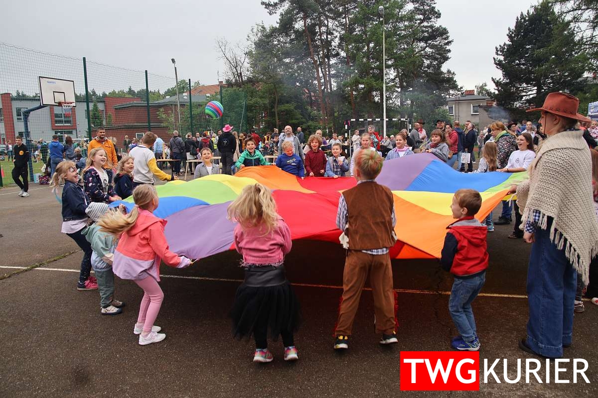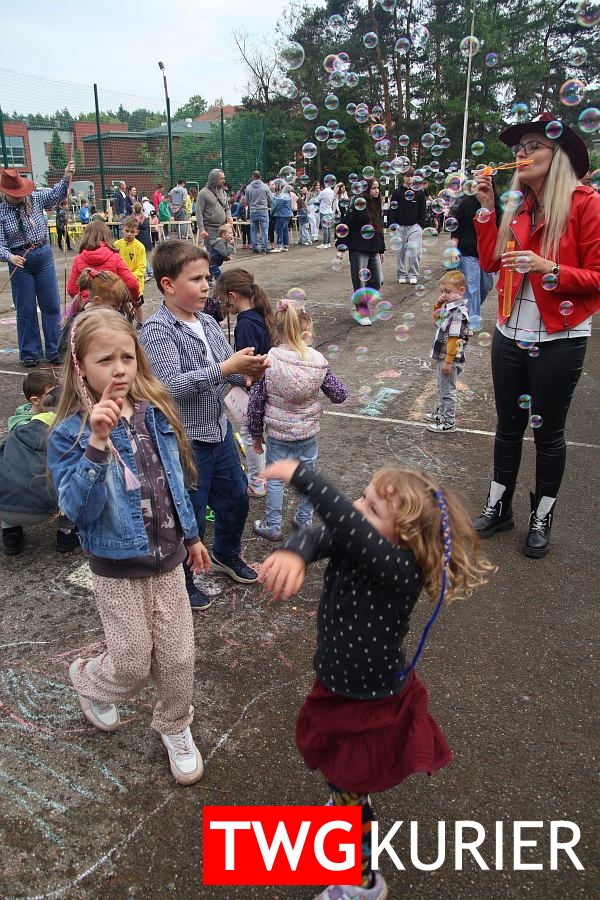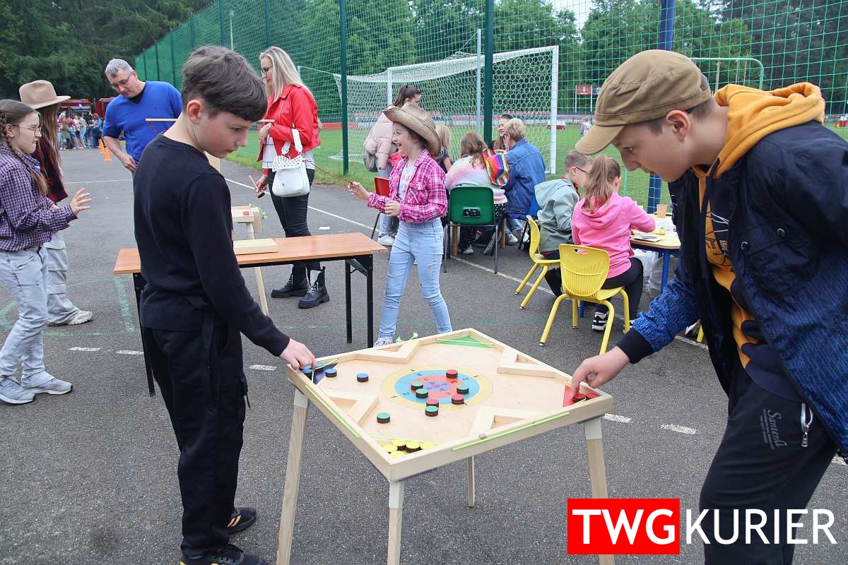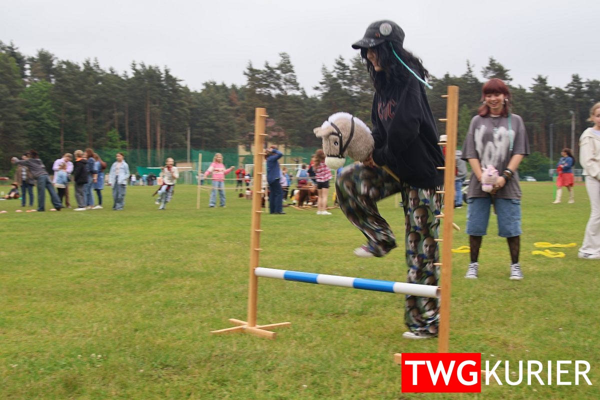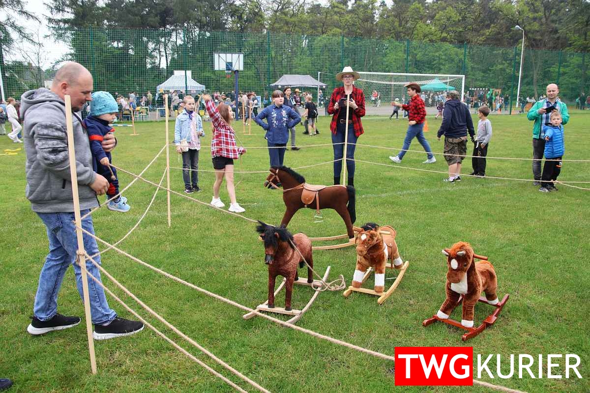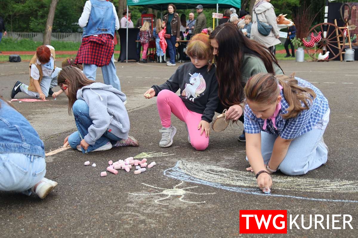 30 maja o godzinie 16.00 teren Szkoły Podstawowej w Tworogu zamienił się w prawdziwą krainę rodem z Dzikiego Zachodu. Wszystko za sprawą wyjątkowego Dnia Dziecka w stylu kowbojskim, który obfitował w atrakcje, niespodzianki i mnóstwo dobrej zabawy. W klimat Dzikiego Zachodu wprowadzili nas już na samym początku uczniowie klas ósmych, prezentując przepięknie wykonany taniec, który zachwycił wszystkich zgromadzonych i otworzył wydarzenie z wielkim rozmachem. W dalszej części uczniowie klas 1–3, pamiętając o niedawnym Dniu Matki, zaprezentowali wzruszający repertuar muzyczny dla mamy i taty. Następnie klasy trzecie z przytupem zatańczyły „Skrzypka”, wprowadzając jeszcze więcej radości i country’owego ducha. Podczas imprezy dzieciom życzenia złożył wójt gminy Tworóg, pan Łukasz Ziob. Gościliśmy również Zespół Szkół Centrum Kształcenia Rolniczego w Nakle Śląskim, który odegrał niezwykle ważną rolę w tym wydarzeniu. To właśnie ta szkoła zapewniła uczniom mnóstwo atrakcji: popcorn, truskawki w czekoladzie, możliwość zdobycia certyfikatu w dojeniu krowy oraz prezentację swojej oferty edukacyjnej – idealnie wpisującej się w klimat imprezy. Wielką frajdą okazały się kowbojskie wyzwania: łapanie konia na lasso, hobby horsing, tor przeszkód ze szklanką mleka, rzucanie do puszek, skoki w workach, konkurencje z kapeluszami i zabawy z kolorową gumą. Nie zabrakło również warsztatów łuczniczych prowadzonych przez mistrzów Filipa i Marcina Szelągów, w których dzieci chętnie brały udział. Dla miłośników twórczej zabawy przygotowano stanowiska z artboxami, malowaniem na drewnie, robieniem gniotków, kolorowymi warkoczykami i koralikami. Ciekawym przerywnikiem były również gry stolikowe rozwijające logiczne myślenie i sprawność manualną. Nad wszystkim czuwał ratownik medyczny, który dodatkowo prowadził instruktaż z pierwszej pomocy. Strażacy i policjanci również zadbali o bezpieczeństwo i dodatkowe atrakcje dla najmłodszych. Dzięki dyspensie od księdza proboszcza mogliśmy z czystym sumieniem skorzystać z grillowych przysmaków podczas grill time’u, który – wraz z kawą i domowymi wypiekami – zapewnili niezastąpieni rodzice. Wielkie podziękowania kierujemy właśnie do Rodziców, których ogromne zaangażowanie, wsparcie i energia sprawiły, że ten dzień był pełen radości i uśmiechu. Całość wydarzenia została profesjonalnie i z humorem poprowadzona przez niezawodny zespół „Przerwa na kawę”, który zadbał o dobry nastrój i sprawną organizację atrakcji.