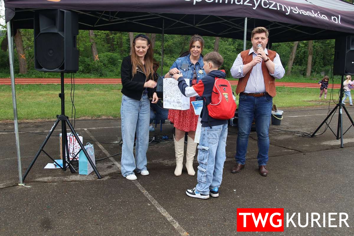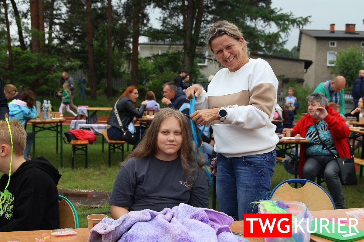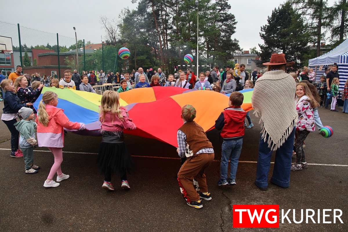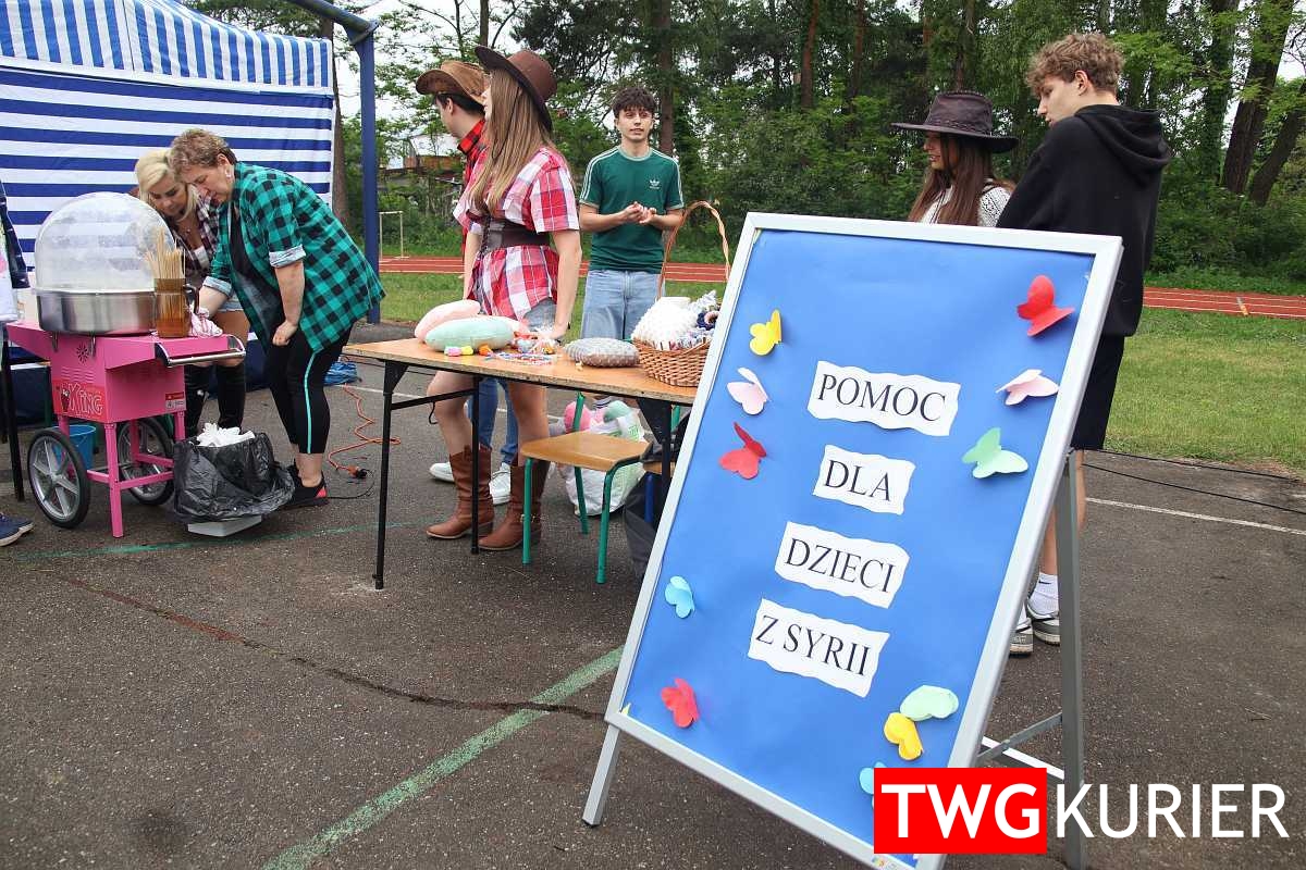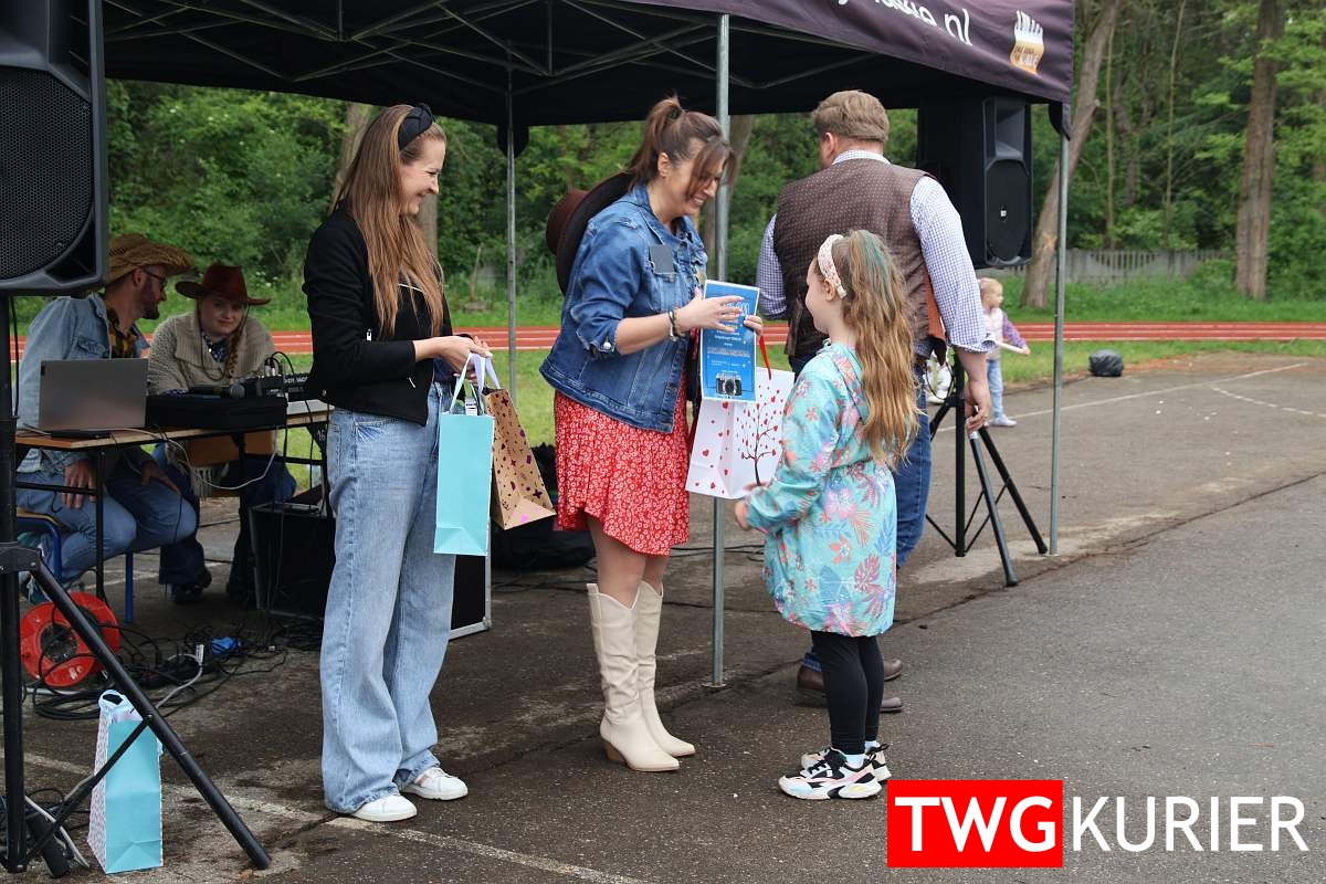 30 maja o godzinie 16.00 teren Szkoły Podstawowej w Tworogu zamienił się w prawdziwą krainę rodem z Dzikiego Zachodu. Wszystko za sprawą wyjątkowego Dnia Dziecka w stylu kowbojskim, który obfitował w atrakcje, niespodzianki i mnóstwo dobrej zabawy. W klimat Dzikiego Zachodu wprowadzili nas już na samym początku uczniowie klas ósmych, prezentując przepięknie wykonany taniec, który zachwycił wszystkich zgromadzonych i otworzył wydarzenie z wielkim rozmachem. W dalszej części uczniowie klas 1–3, pamiętając o niedawnym Dniu Matki, zaprezentowali wzruszający repertuar muzyczny dla mamy i taty. Następnie klasy trzecie z przytupem zatańczyły „Skrzypka”, wprowadzając jeszcze więcej radości i country’owego ducha. Podczas imprezy dzieciom życzenia złożył wójt gminy Tworóg, pan Łukasz Ziob. Gościliśmy również Zespół Szkół Centrum Kształcenia Rolniczego w Nakle Śląskim, który odegrał niezwykle ważną rolę w tym wydarzeniu. To właśnie ta szkoła zapewniła uczniom mnóstwo atrakcji: popcorn, truskawki w czekoladzie, możliwość zdobycia certyfikatu w dojeniu krowy oraz prezentację swojej oferty edukacyjnej – idealnie wpisującej się w klimat imprezy. Wielką frajdą okazały się kowbojskie wyzwania: łapanie konia na lasso, hobby horsing, tor przeszkód ze szklanką mleka, rzucanie do puszek, skoki w workach, konkurencje z kapeluszami i zabawy z kolorową gumą. Nie zabrakło również warsztatów łuczniczych prowadzonych przez mistrzów Filipa i Marcina Szelągów, w których dzieci chętnie brały udział. Dla miłośników twórczej zabawy przygotowano stanowiska z artboxami, malowaniem na drewnie, robieniem gniotków, kolorowymi warkoczykami i koralikami. Ciekawym przerywnikiem były również gry stolikowe rozwijające logiczne myślenie i sprawność manualną. Nad wszystkim czuwał ratownik medyczny, który dodatkowo prowadził instruktaż z pierwszej pomocy. Strażacy i policjanci również zadbali o bezpieczeństwo i dodatkowe atrakcje dla najmłodszych. Dzięki dyspensie od księdza proboszcza mogliśmy z czystym sumieniem skorzystać z grillowych przysmaków podczas grill time’u, który – wraz z kawą i domowymi wypiekami – zapewnili niezastąpieni rodzice. Wielkie podziękowania kierujemy właśnie do Rodziców, których ogromne zaangażowanie, wsparcie i energia sprawiły, że ten dzień był pełen radości i uśmiechu. Całość wydarzenia została profesjonalnie i z humorem poprowadzona przez niezawodny zespół „Przerwa na kawę”, który zadbał o dobry nastrój i sprawną organizację atrakcji.