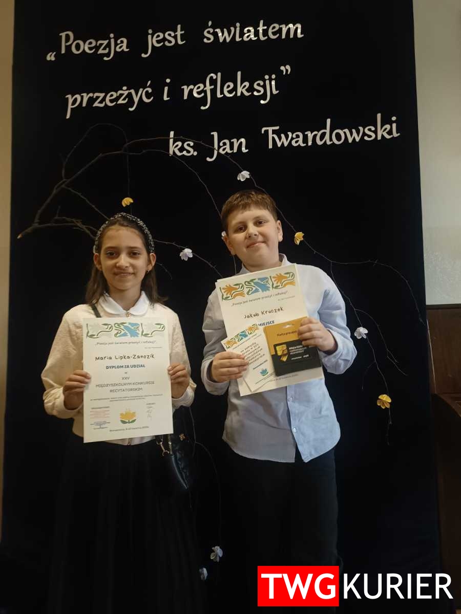 1 miejsce: Jakub Kruczek z ZSP im. Jana Pawła II w Boruszowicach ex aequo Juliana Bodnar z SP nr 5 im. Królowej Jadwigi w Tarnowskich Górach