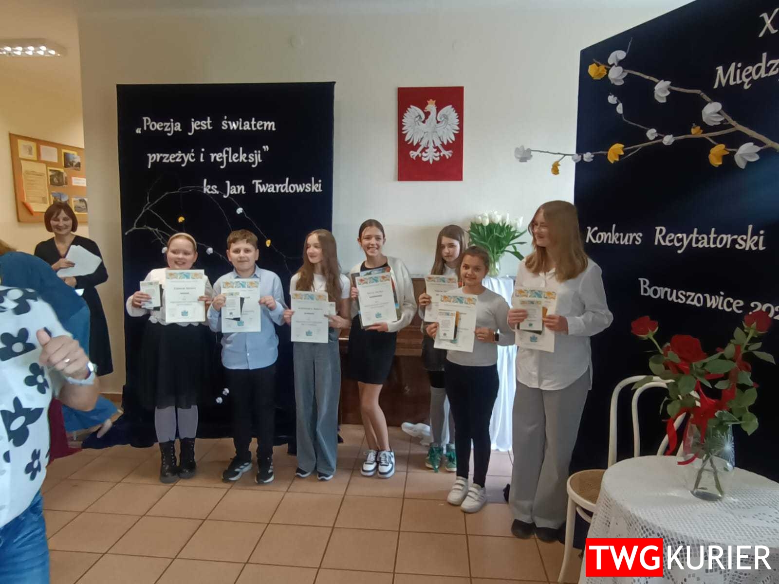Dalszy ciąg zmagań młodzieży w jubileuszowym Konkursie Recytatorskim w Szkole Podstawowej w Boruszowicach. Tym razem swoje zdolności prezentowali uczniowie klas 4 – 6. Było tłoczno, na widowni pojawili się rodzice i koledzy, więc atmosfera była stresująca dla młodych wykonawców. Tym bardziej więc należą się gratulacje, za barwne i pełne emocji wykonania prozy i poezji, okraszone w kilku przypadkach humorem oraz sugestywną i przemyślaną grą aktorską.