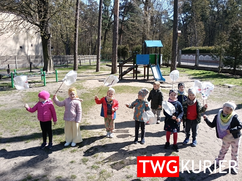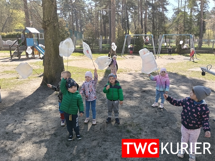 Podczas zajęć powstawały m.in. eko-roboty i eko-drzewo, a młodsze dzieci tworzyły korale z rolek po papierze toaletowym oraz proste wiatromierze z patyków i foliowych woreczków. Ta niepozorna zabawka dostarczyła wiele radości – dzieci z entuzjazmem biegały po przedszkolnym ogrodzie, „łapiąc wiatr”.