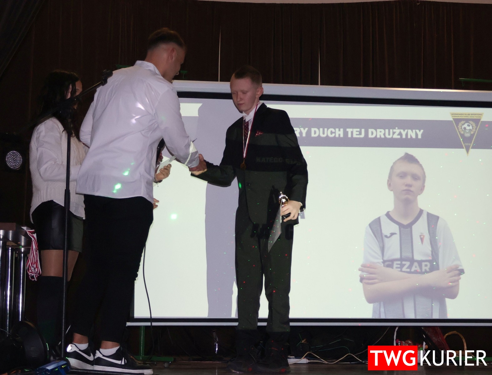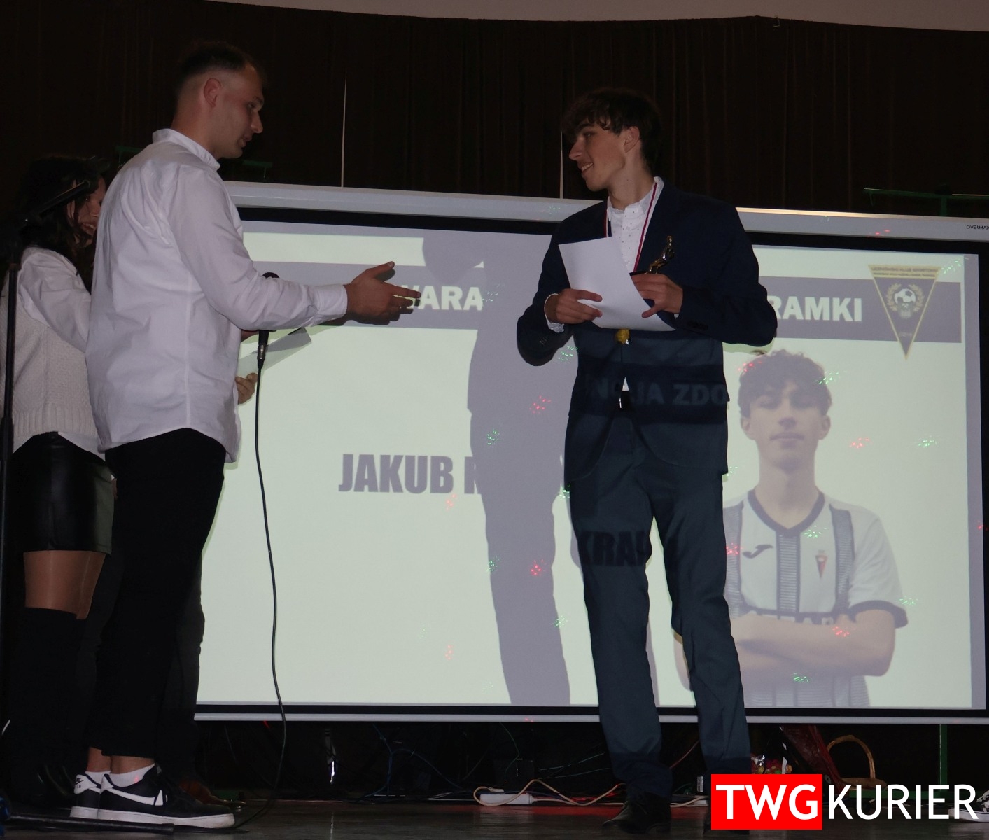 Wieczór upłynął szybko i bardzo aktywnie. były gratulacje, nagrody, podziękowania i mnóstwo zabawy. Organizatorzy zadbali o interaktywny charakter wydarzenia. Przygotowano quizy, pytania, wywiady z piłkarzami. Młodzież wystąpiła w eleganckich strojach, z towarzyszącym poczuciem, że są częścią czegoś wielkiego. Na koniec obraz jedyny w swoim rodzaju. Po posprzątaniu sali, na chwilę przed opuszczeniem GOK-u, młodzież w krawatach bierze w obroty nową piłkę – prezent od Wójta Gminy. Spontanicznie ustawiają się i zaczynają grać. Tego dnia nie można przecież zakończyć inaczej jak tylko „na boisku”.